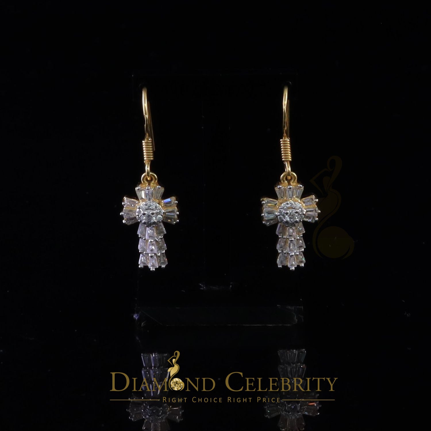 DiamondCelebritees 1.00ct Moissanite Yellow 925 Silver Women's Dangling Cross Fish Hook Earrings