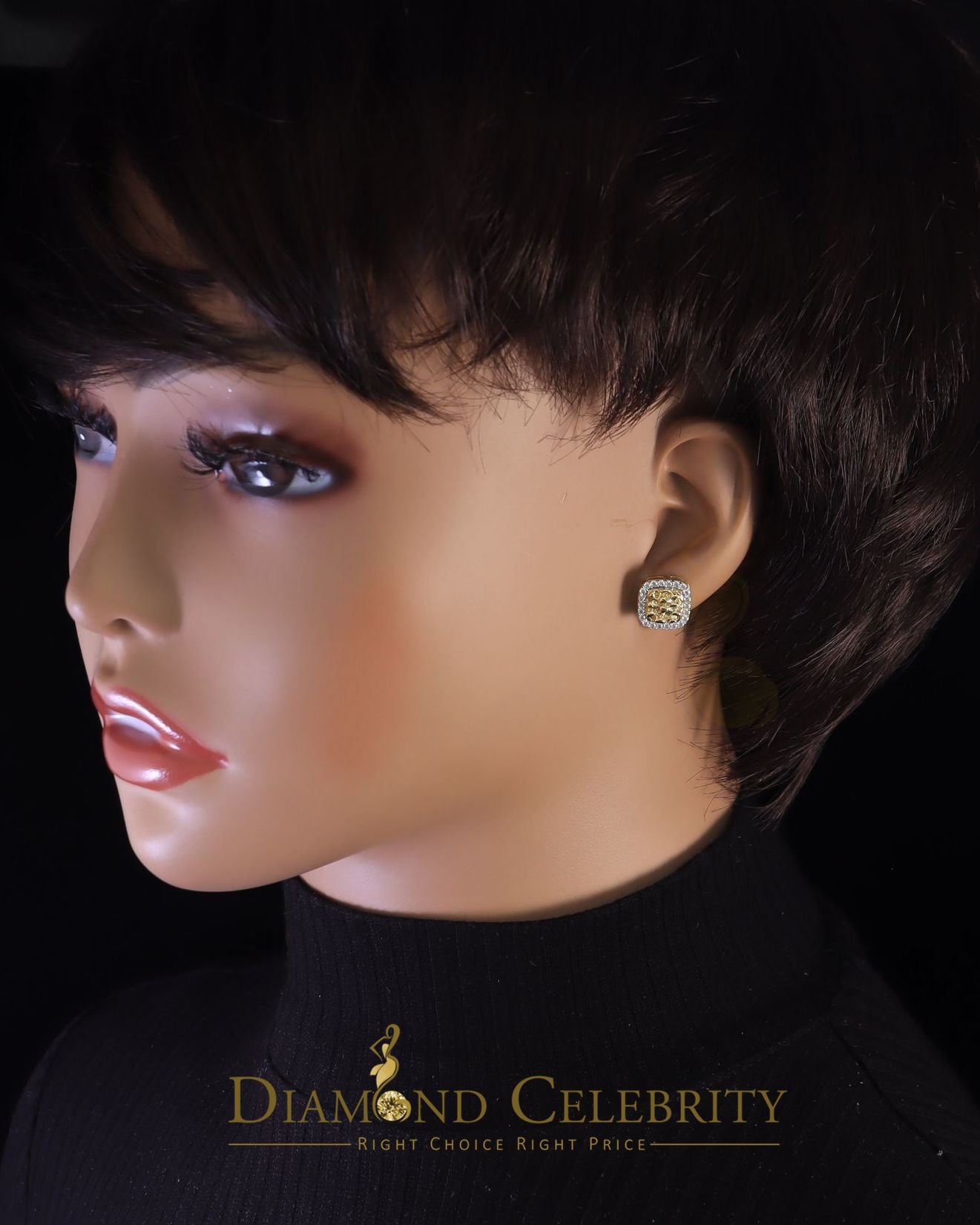 DiamondCelebritees 1.5ct Moissanite Yellow 925 Silver Womens Round Edge Square Shape Nugget Earring