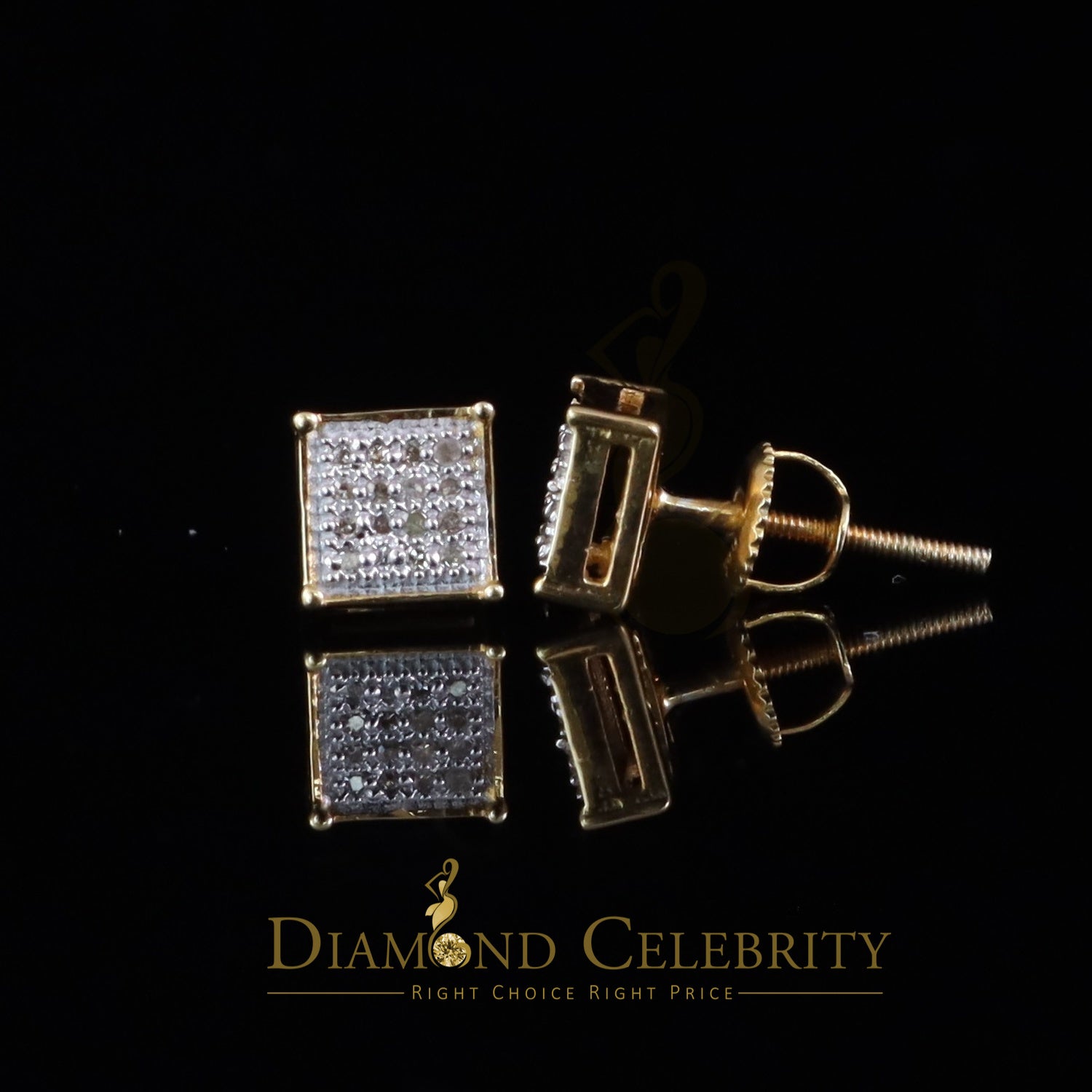 DiamondCelebritees 0.10ct Diamond Stud Earrings For Women Yellow 925 Silver Stud For Men