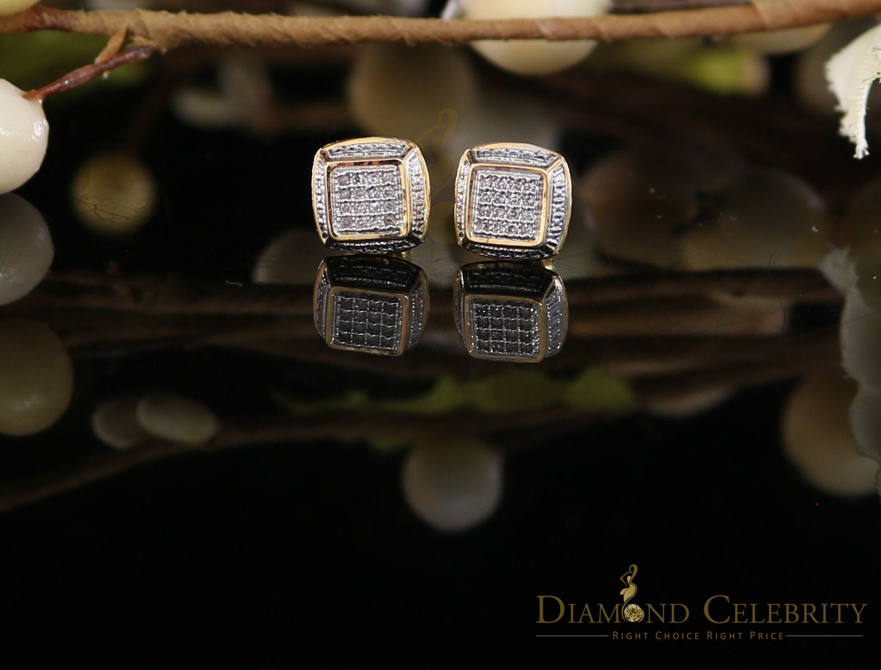 DiamondCelebritees 0.10CT Real Diamonds with 10K Real Yellow Gold Men's/Women's stud Earrings
