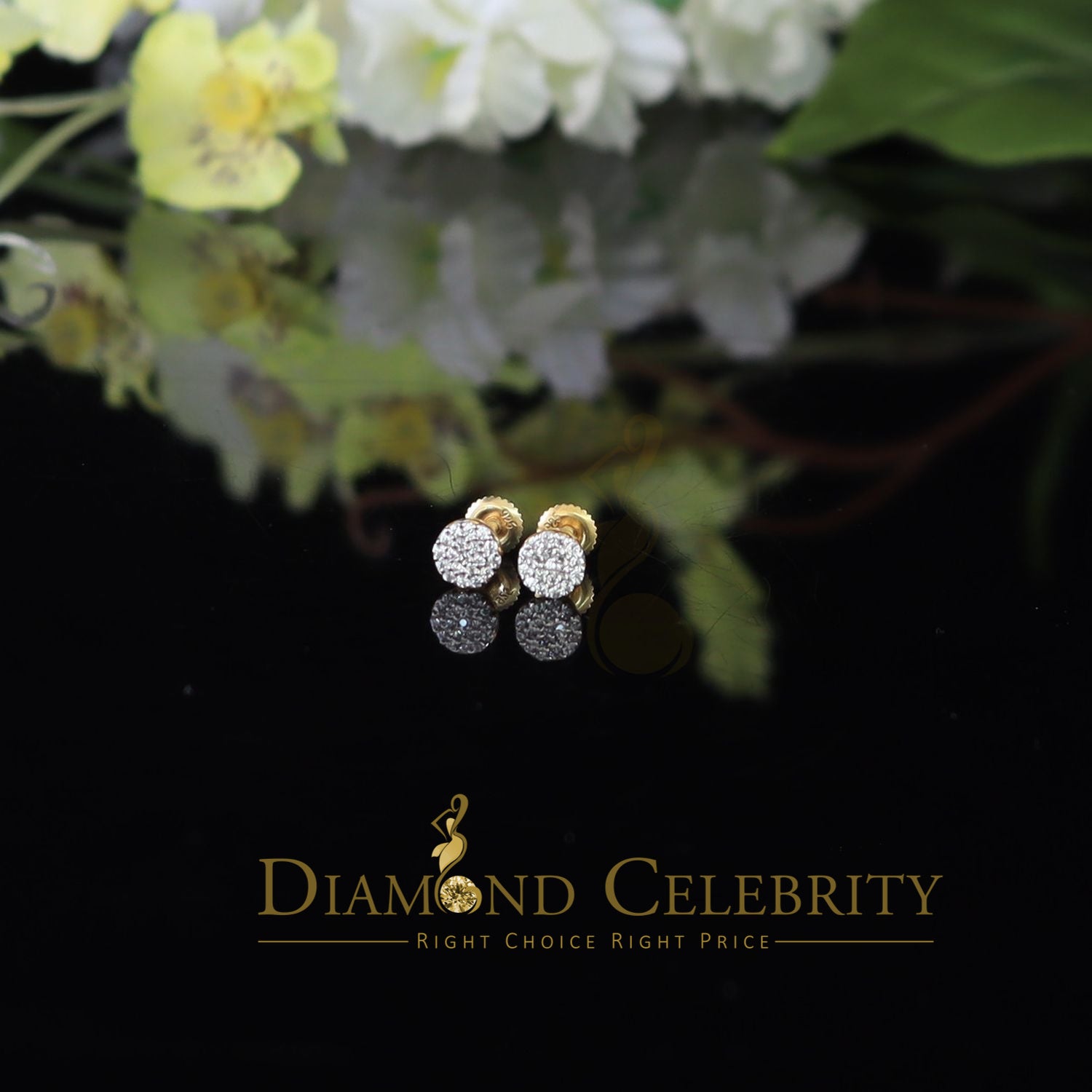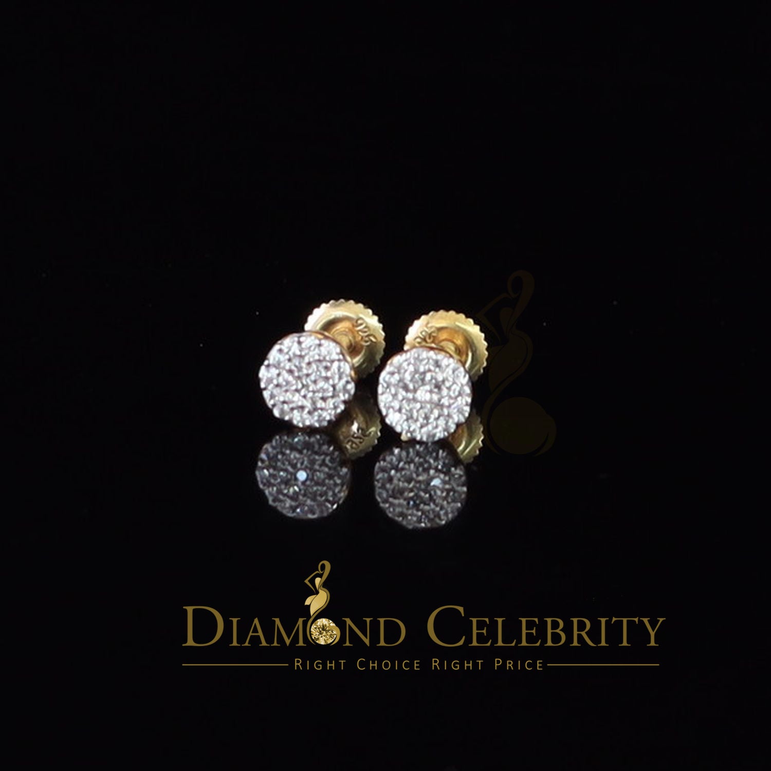 DiamondCelebritees 0.30ct Cubic Zirconia 925 Yellow Silver Aretes Para Hombre Women Round Earrings