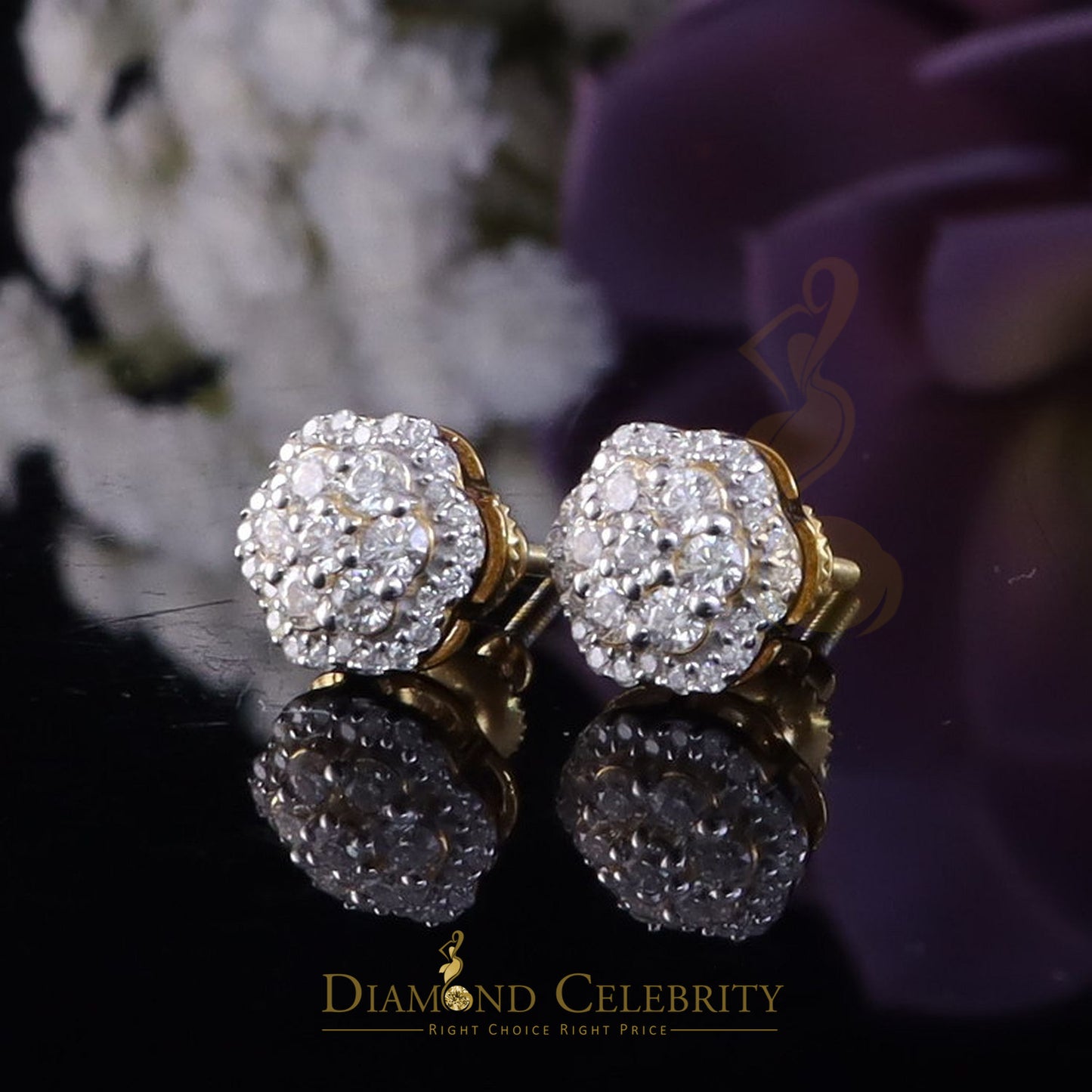 DiamondCelebritees 0.50ct VVS D Moissanite Floral Stud Earrings 925 Silver Yellow for men & Women