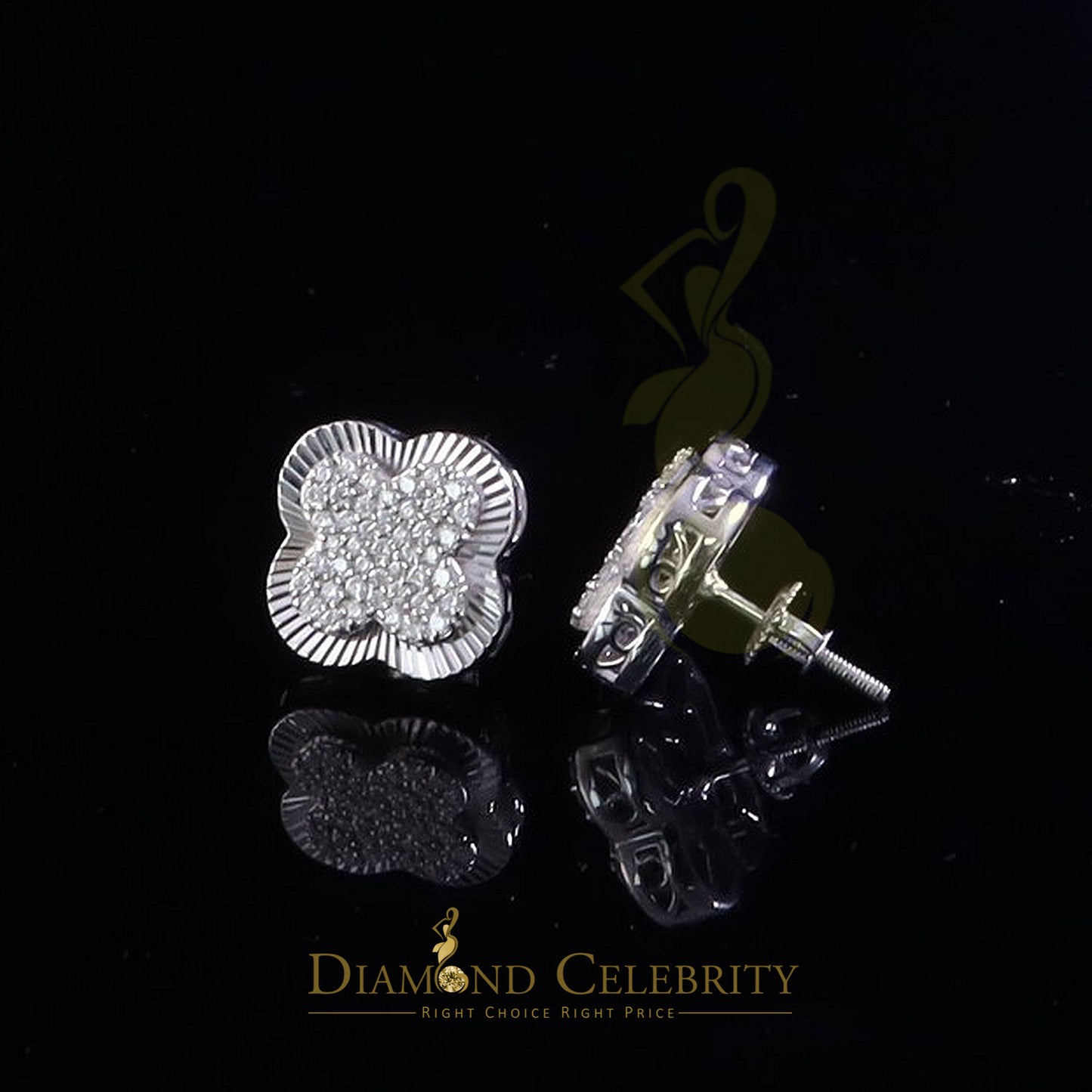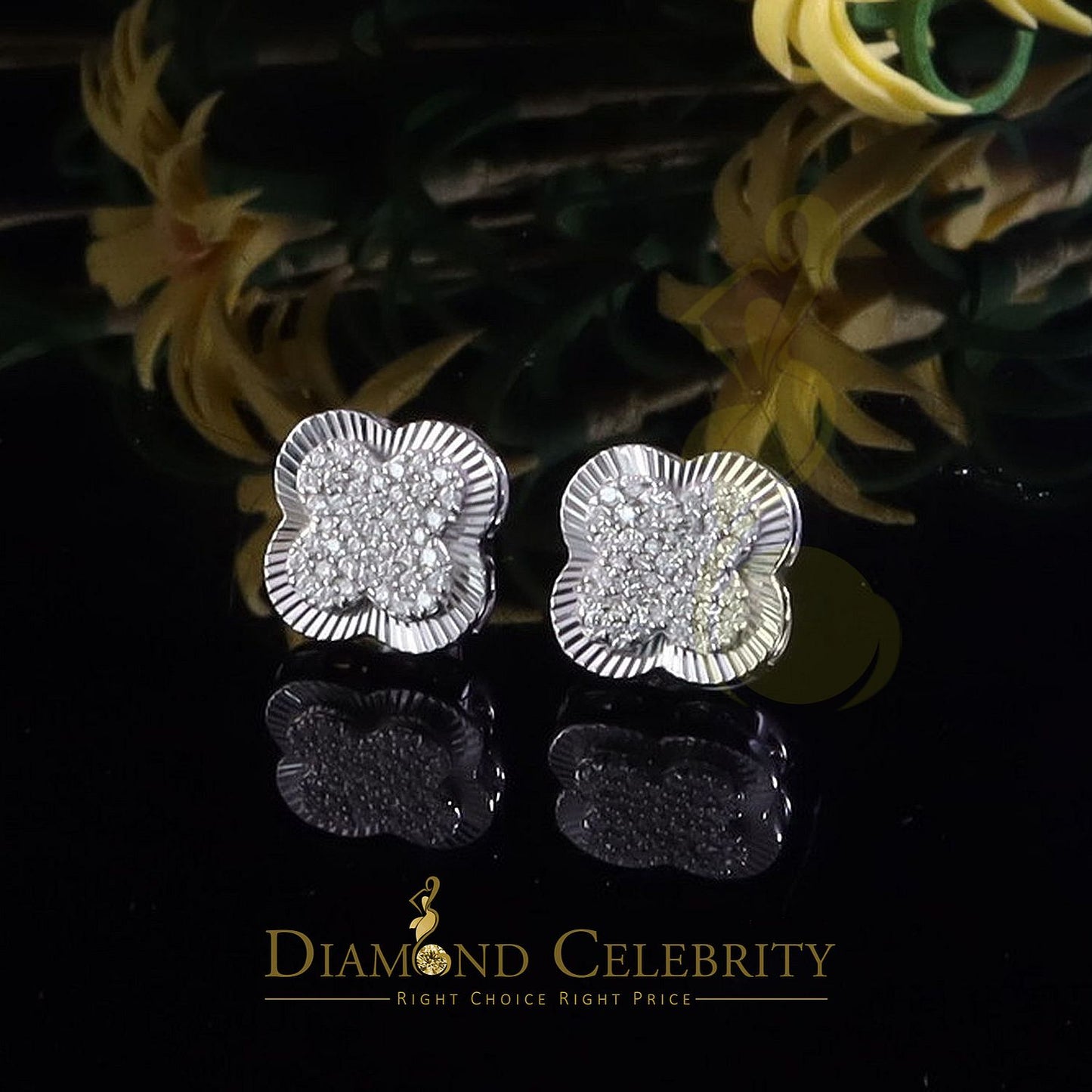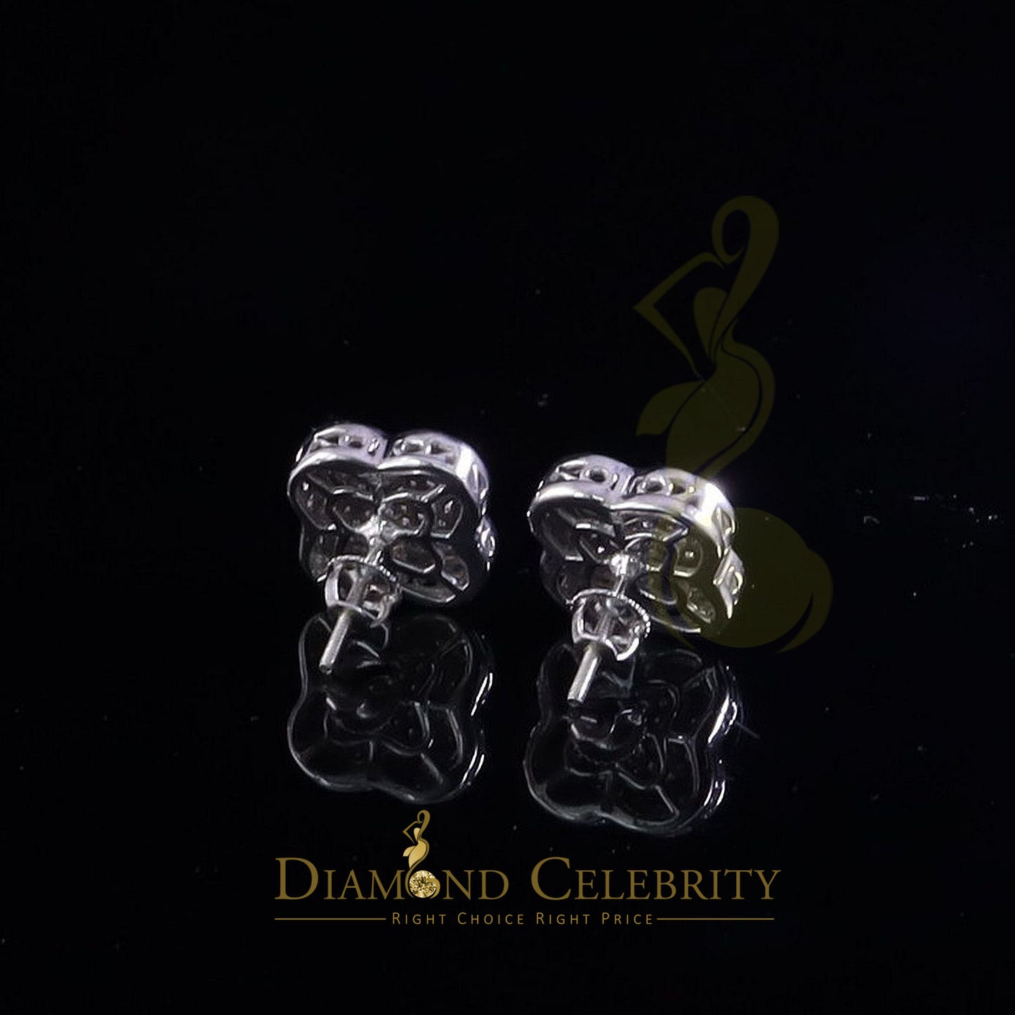 Diamondcelebritees 1.00ct 925 Sterling Silver Moissanite Clover Stud Earrings For Men & Women