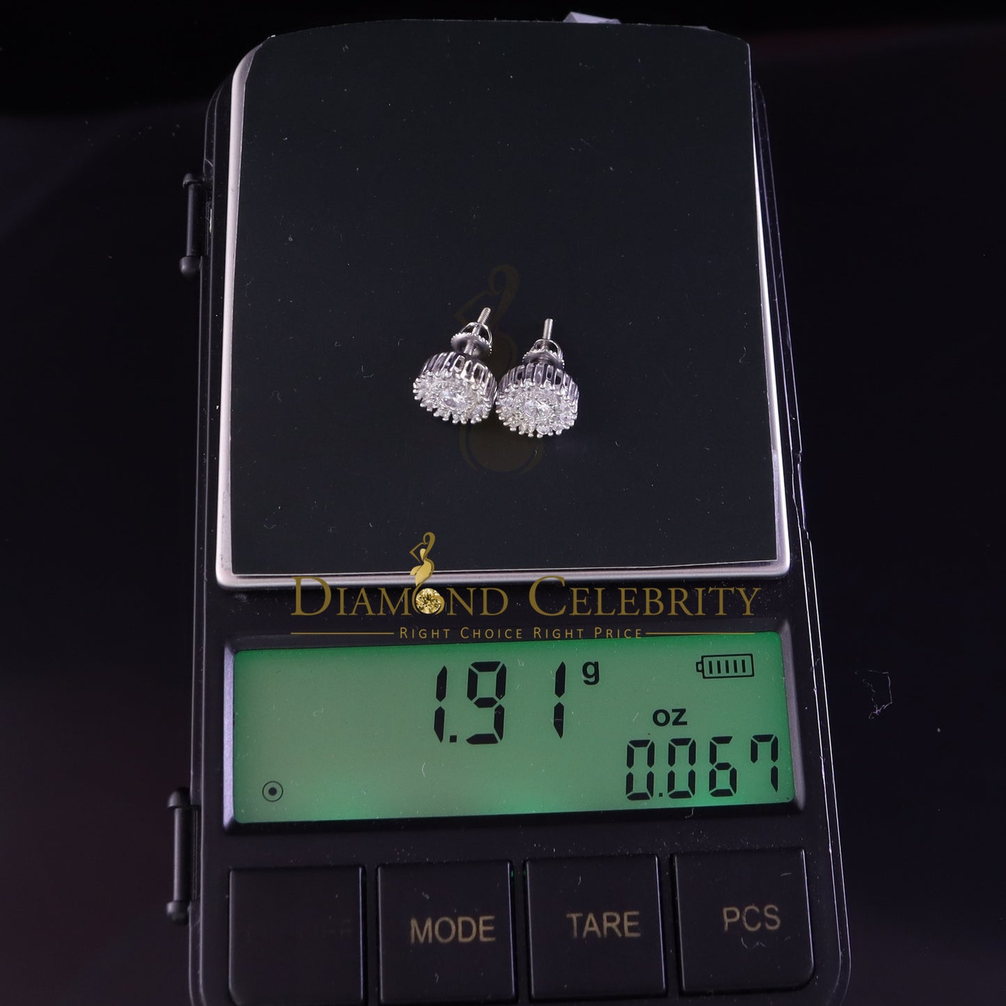 Diamondcelebritees 1.00ct VVS 'D' Moissanite Men's/Womens 925 Silver White Floral Stud Earrings