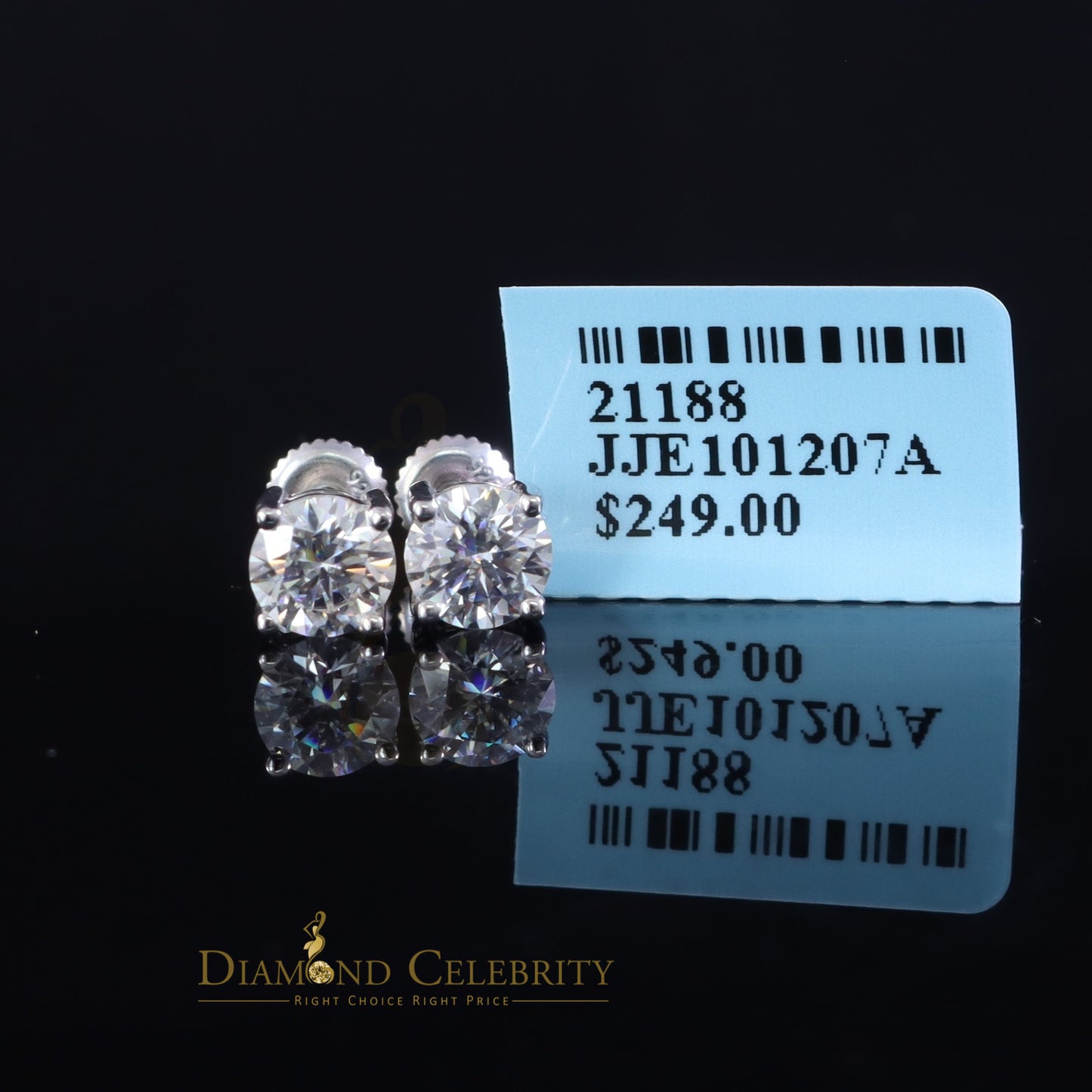 Diamondcelebritees 1.25ct VVS 'D' Moissanite Men's/Womens 925 Silver White Round Stud Earrings