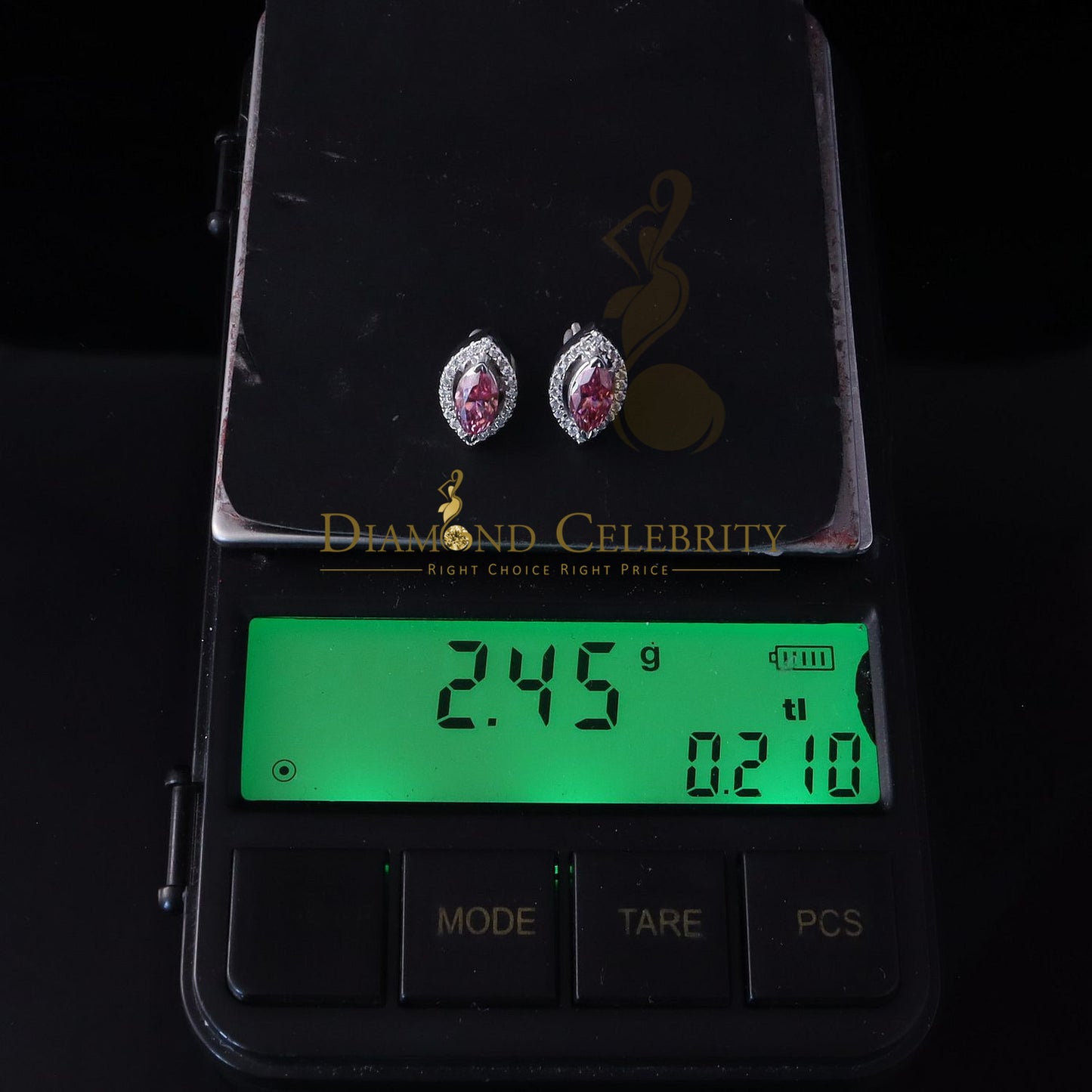 - Style : Pink Solitaire Marquis & White Moissanite Earring Silver Moissanite Earring