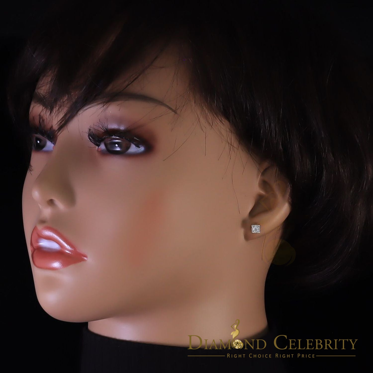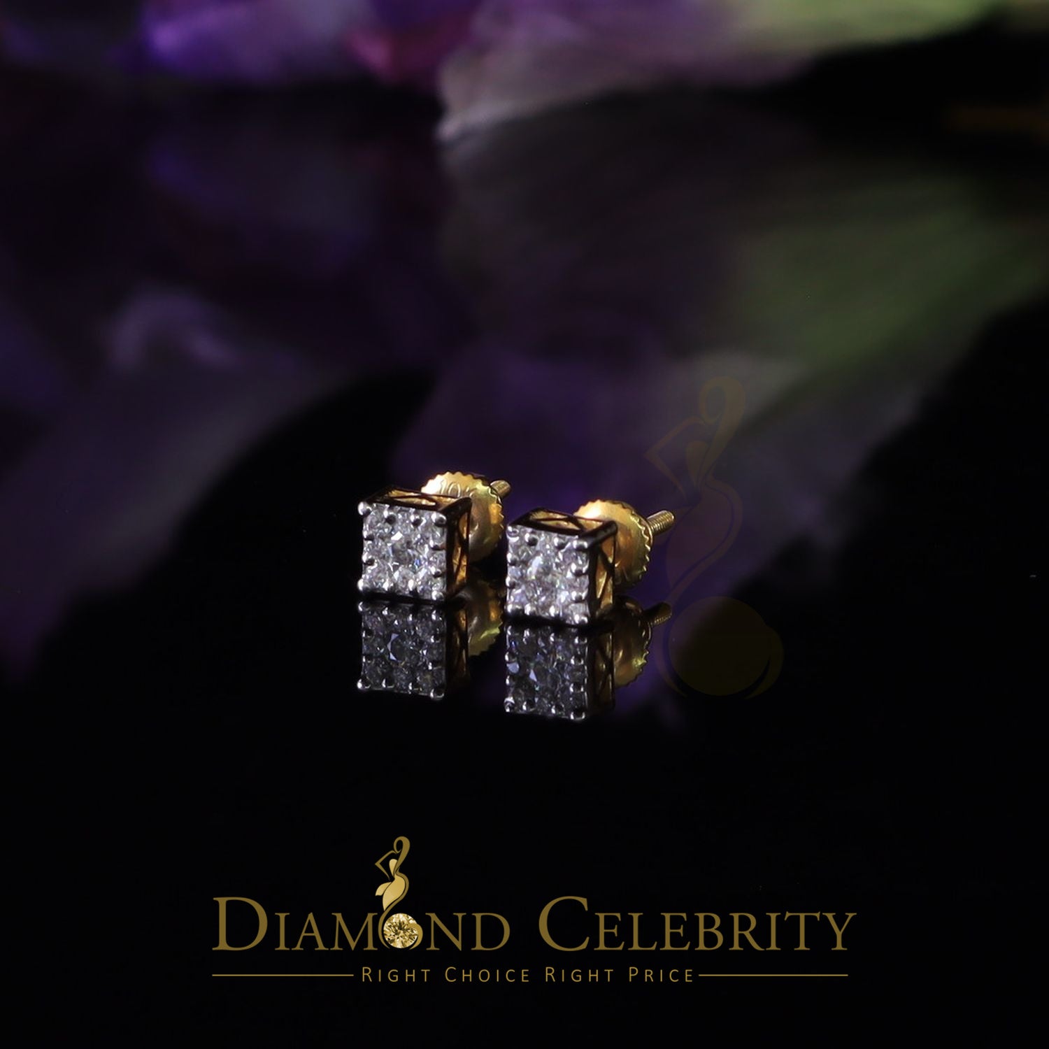 DiamondCelebritees 10k Real Yellow Gold 0.25ct VVS 'D' Color Real Moissanite Stud Square Earrings