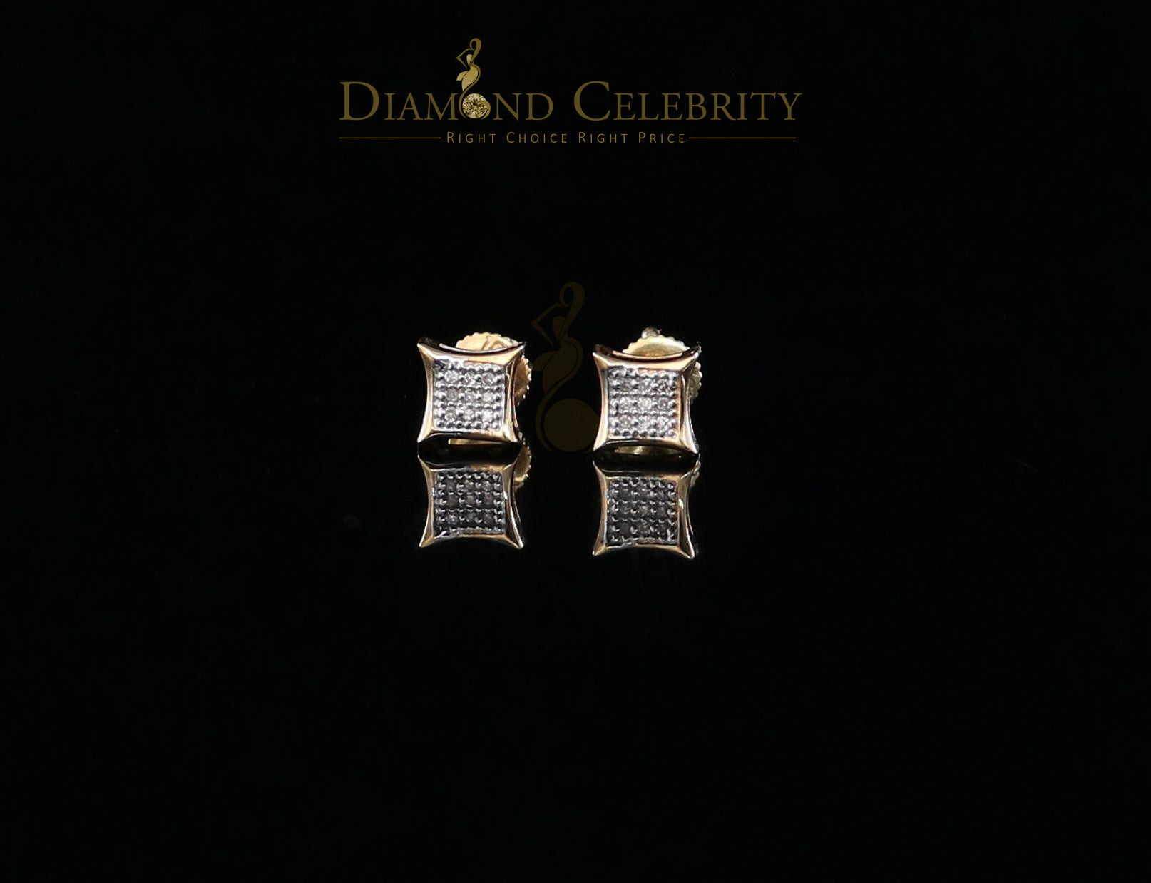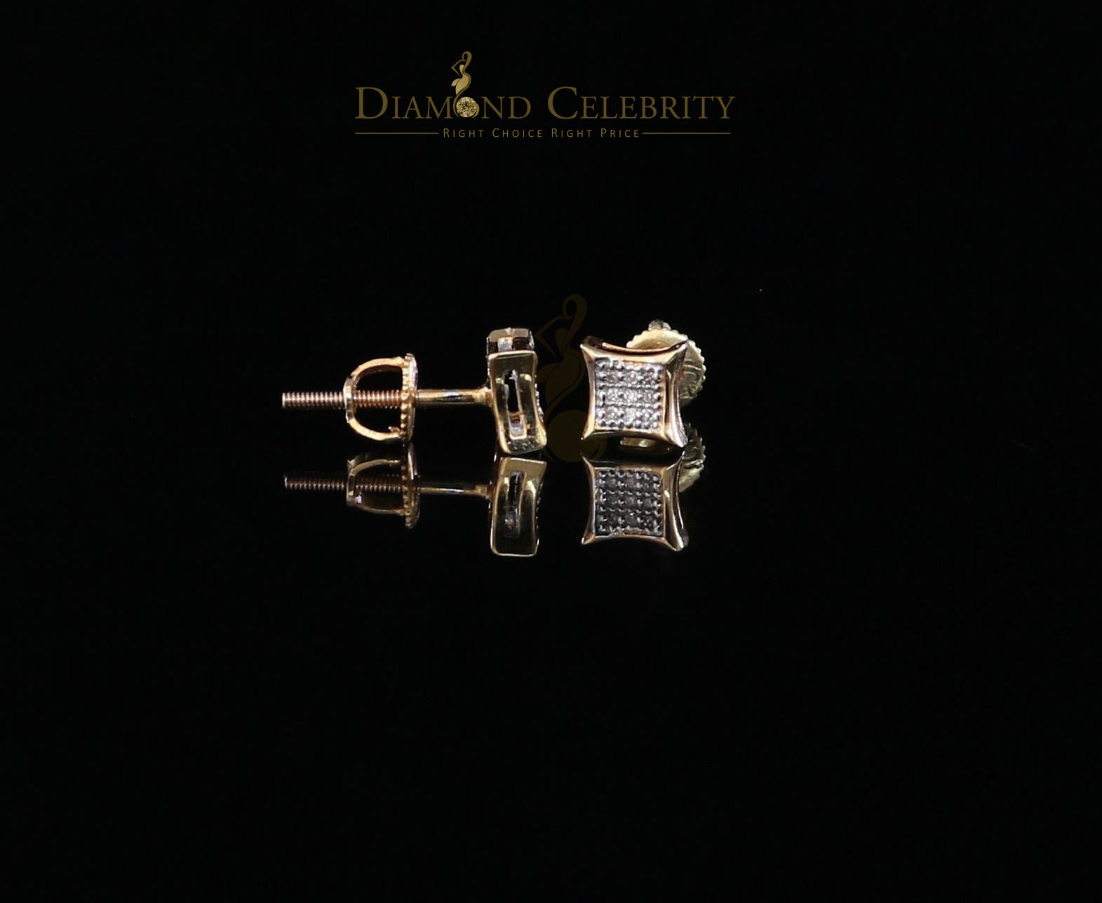 DiamondCelebritees 10K Real Yellow Gold with 0.05ct Real Diamond Square Stud Earring for Men/Women