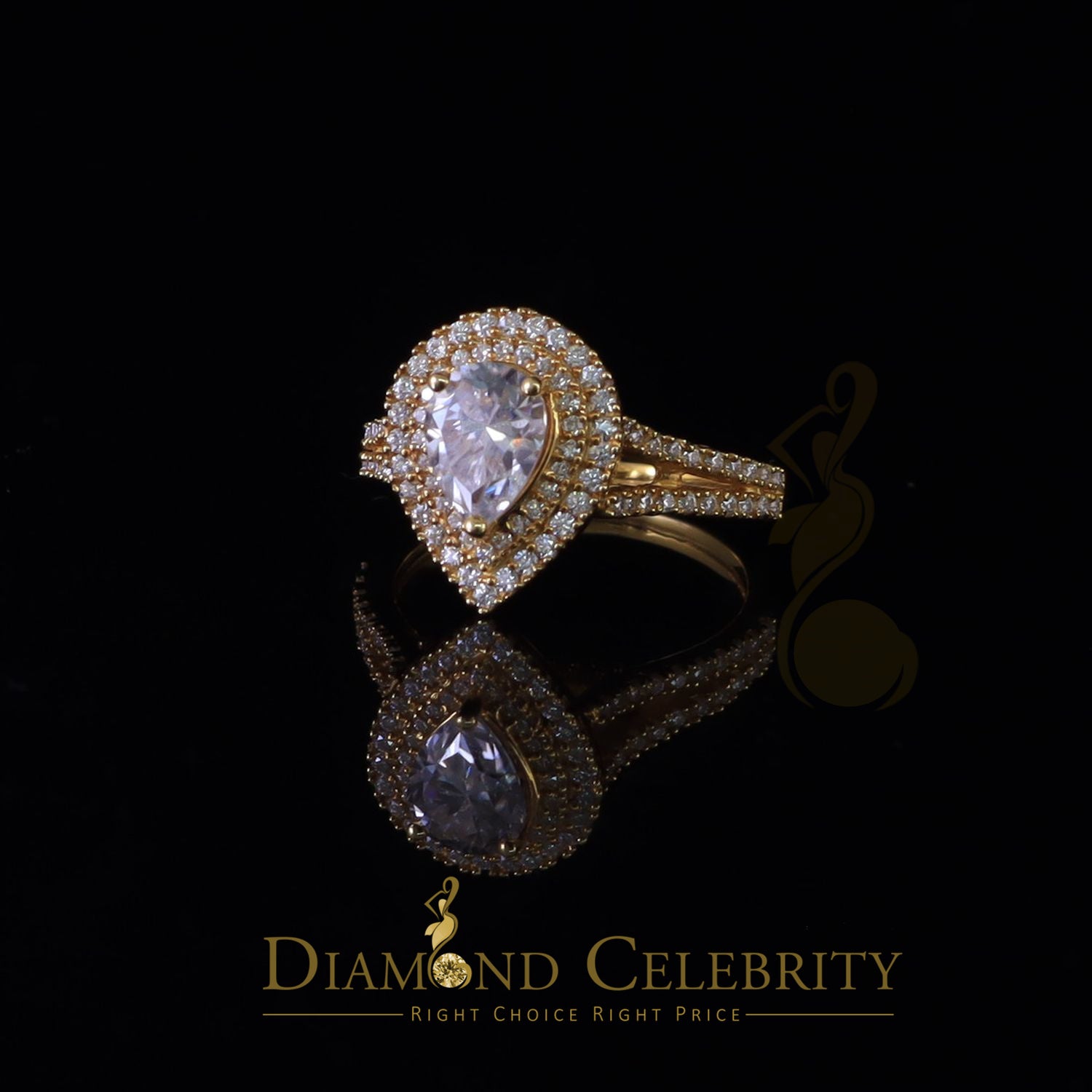 King Of Blings 10K Yellow Gold 2.00CT 'VVS' 'FL' D clr Pear Cut Moissonite Womens Ring Size 7