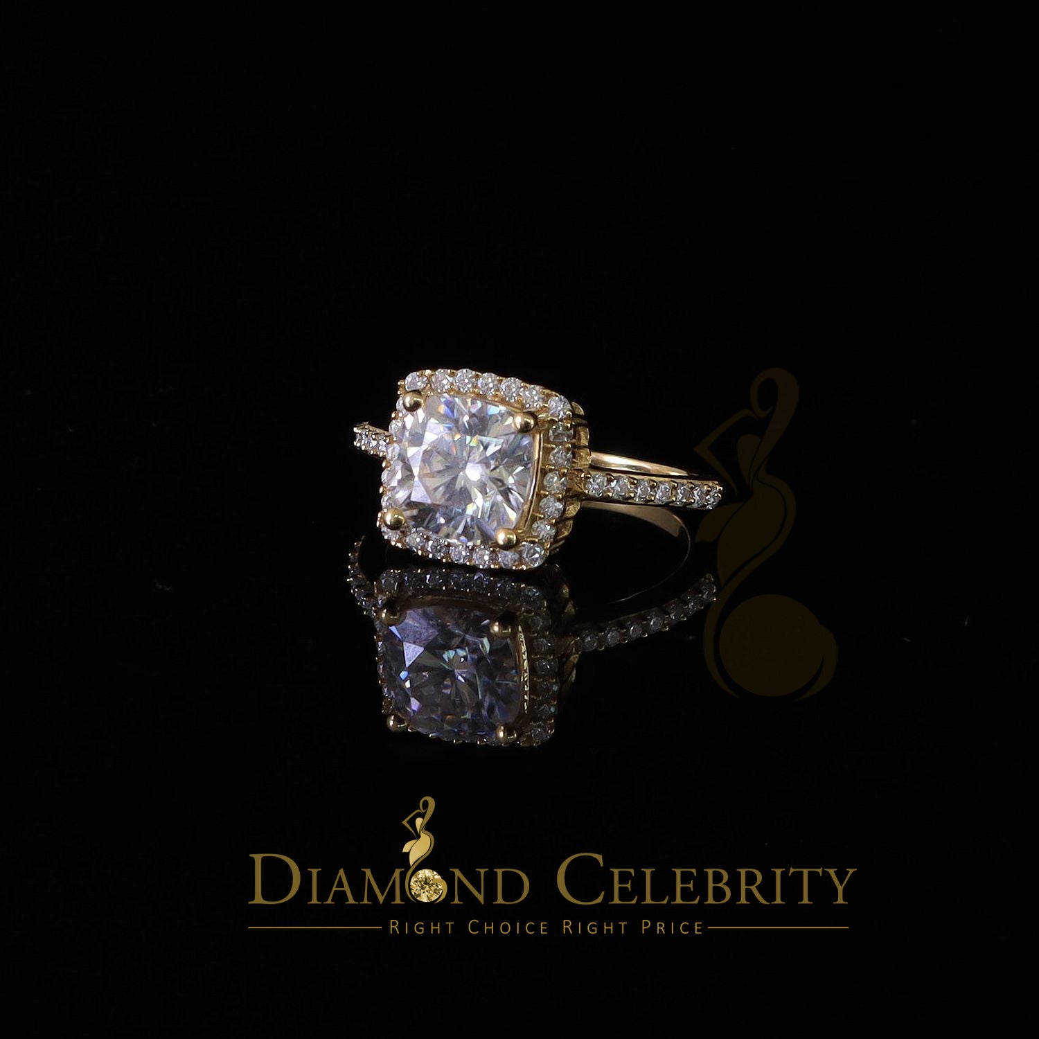 King Of Blings 10K Yellow Gold 3.00CT 'VVS' 'FL' D clr Cushion Cut Moissonite Womens Ring S/7