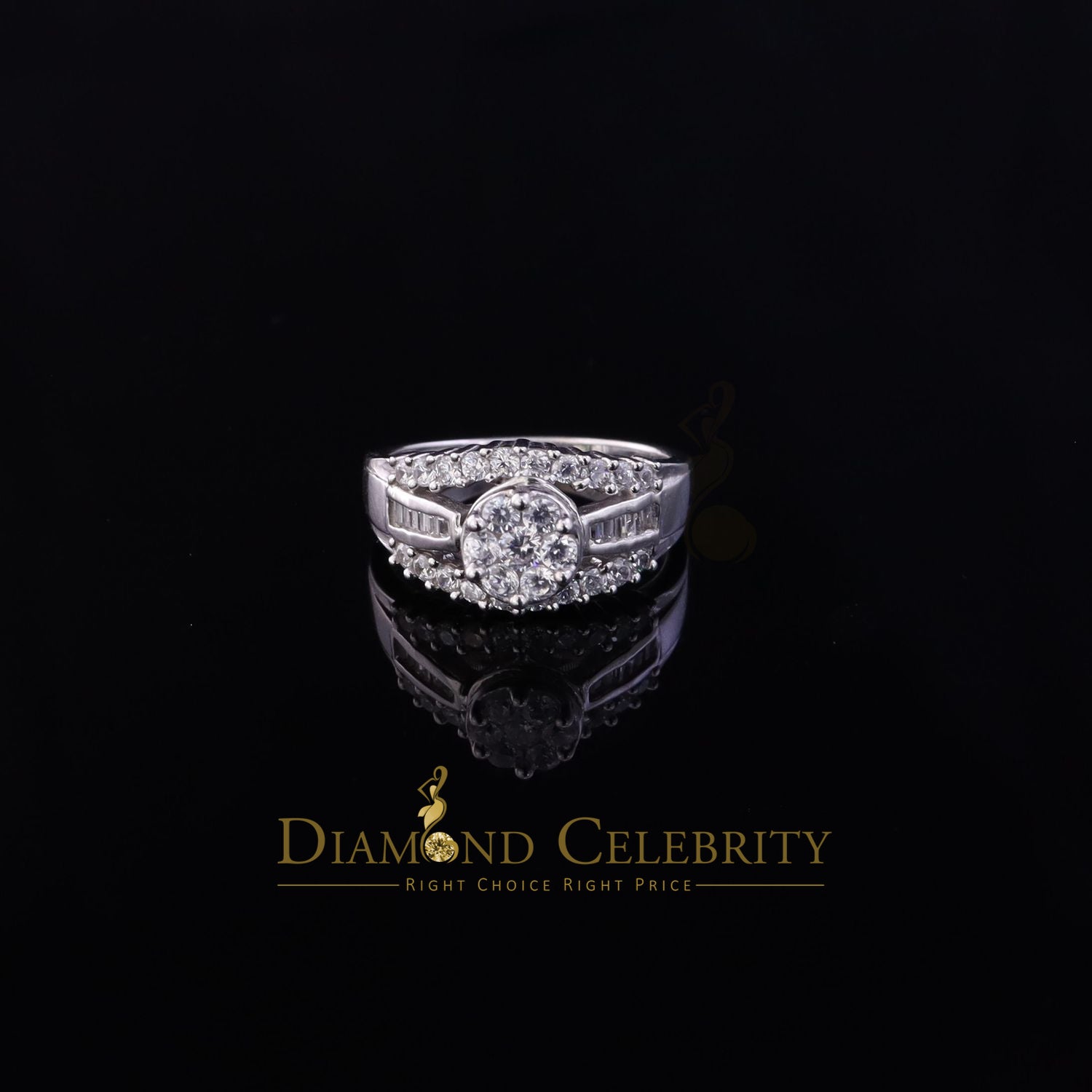 DiamondCelebritees 2.00ct Cubic Zirconia Sterling White Silver Round Engagement Womens Ring Size 7