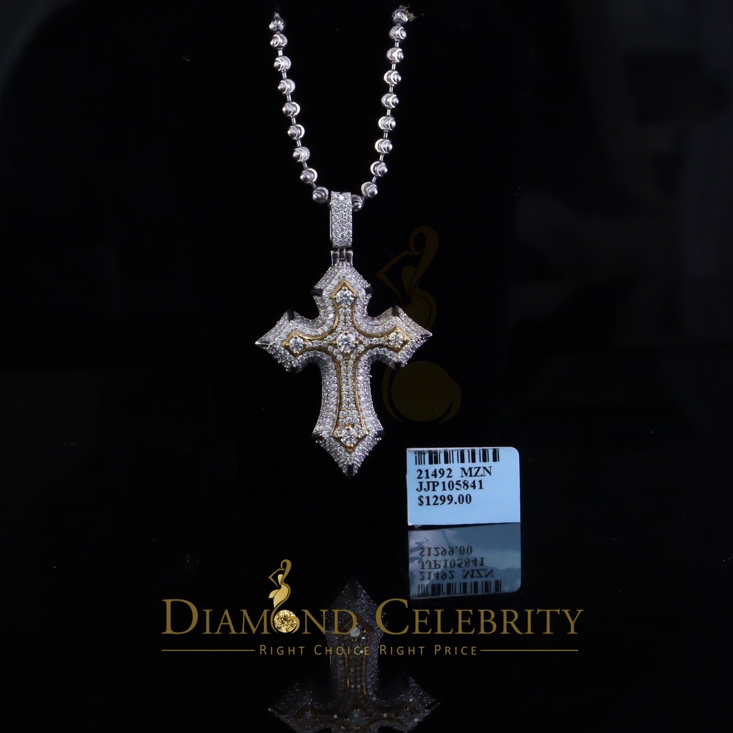 Diamondcelebritees 2.5ct VVS D Moissanite White Tricolor 1.2" Silver Charm Cross Pendant Men/ Women