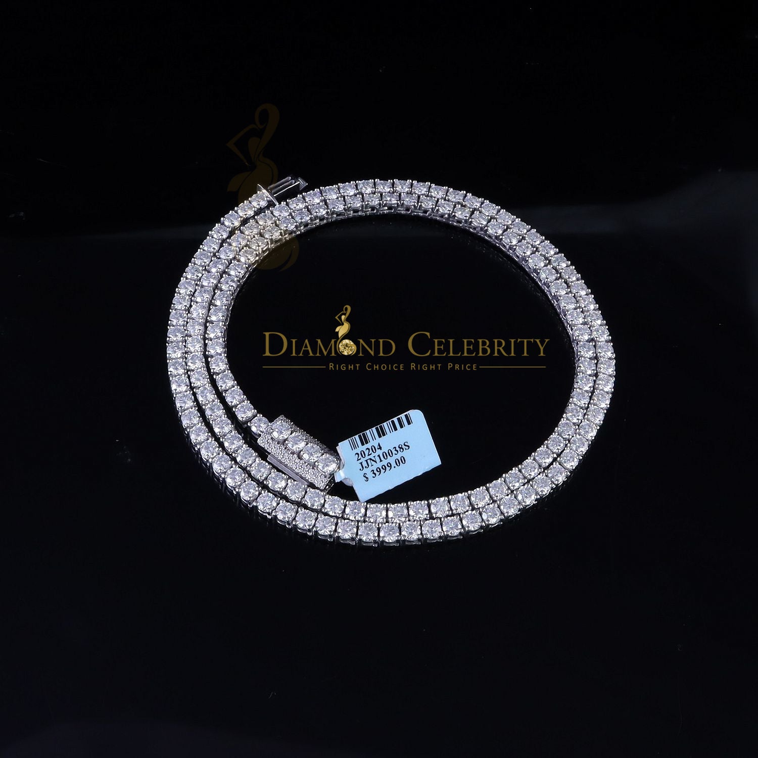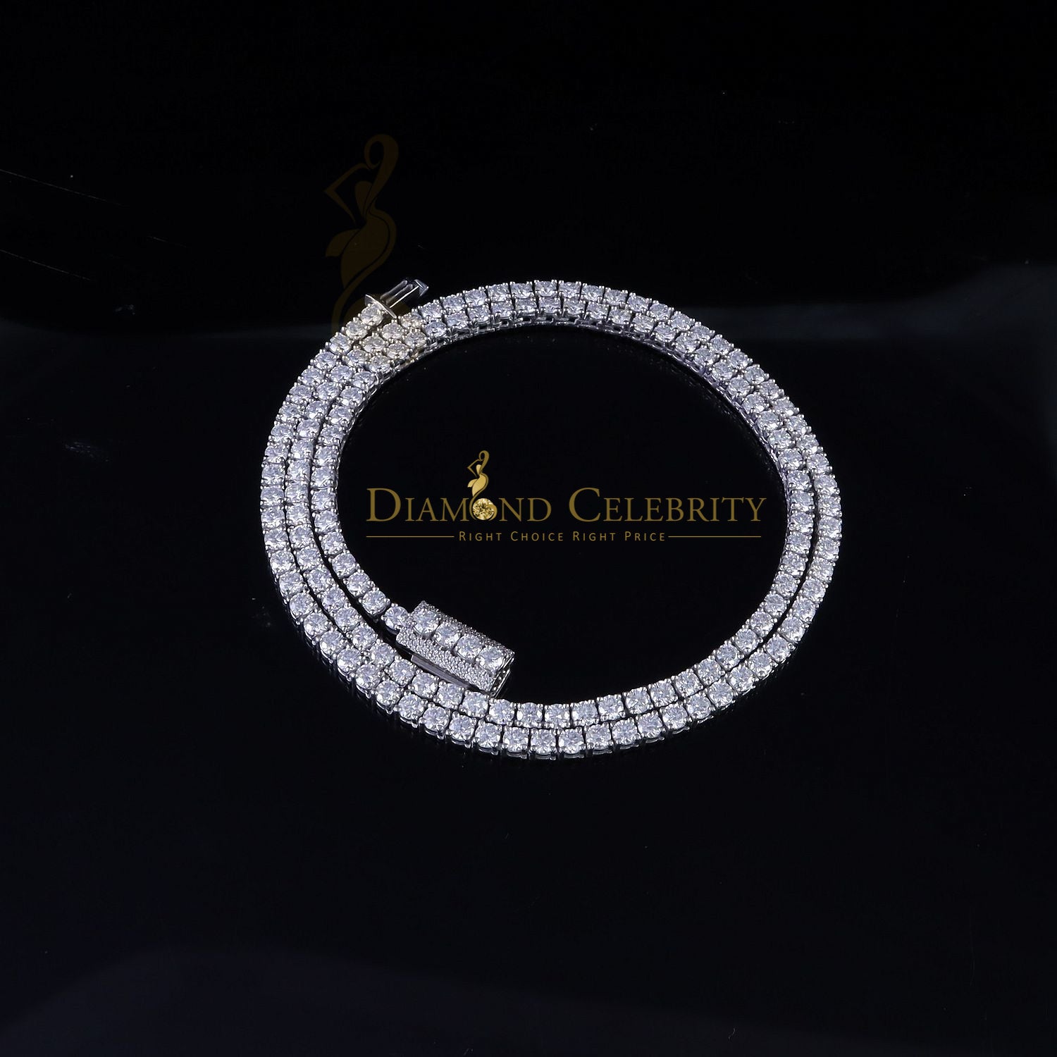 Diamondcelebritees 20ct Moissanite White 925 Silver Round 2Row Tennis Bracelete 4mm Thick 8" Long