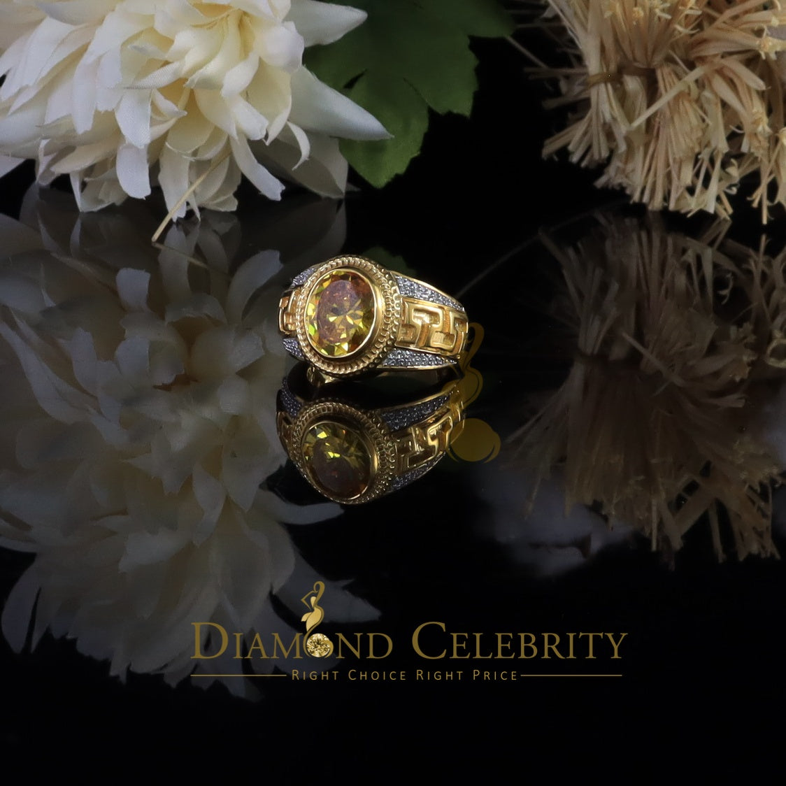 DiamondCelebritees 8.10ct 925 Sterling White Silver Oval Cubic Zirconia Men's Ring Size 9
