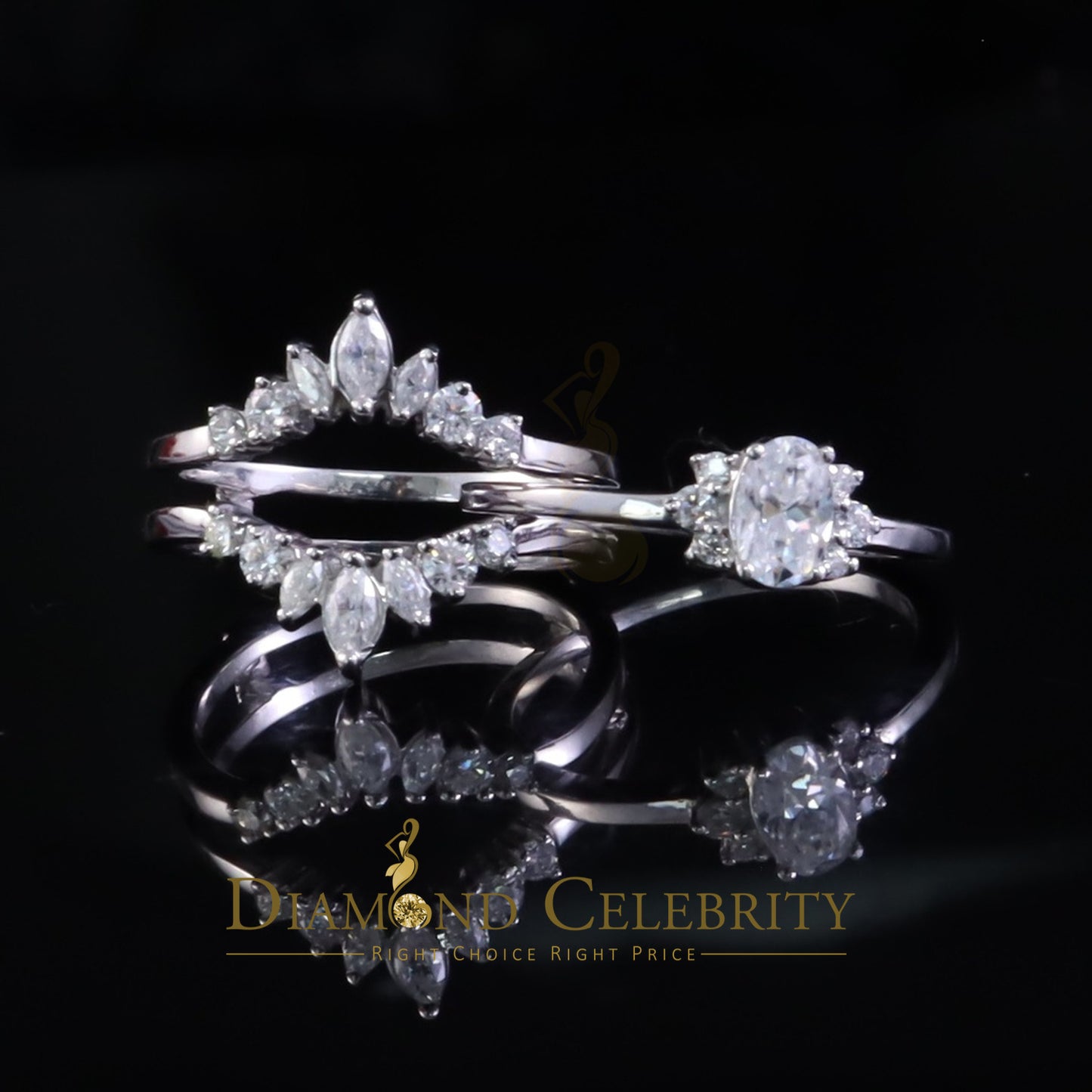 DiamondCelebritees 925 Silver White 1.25ct VVS D Oval Solitaire Moissanite Bridal Guard Rings SZ 7