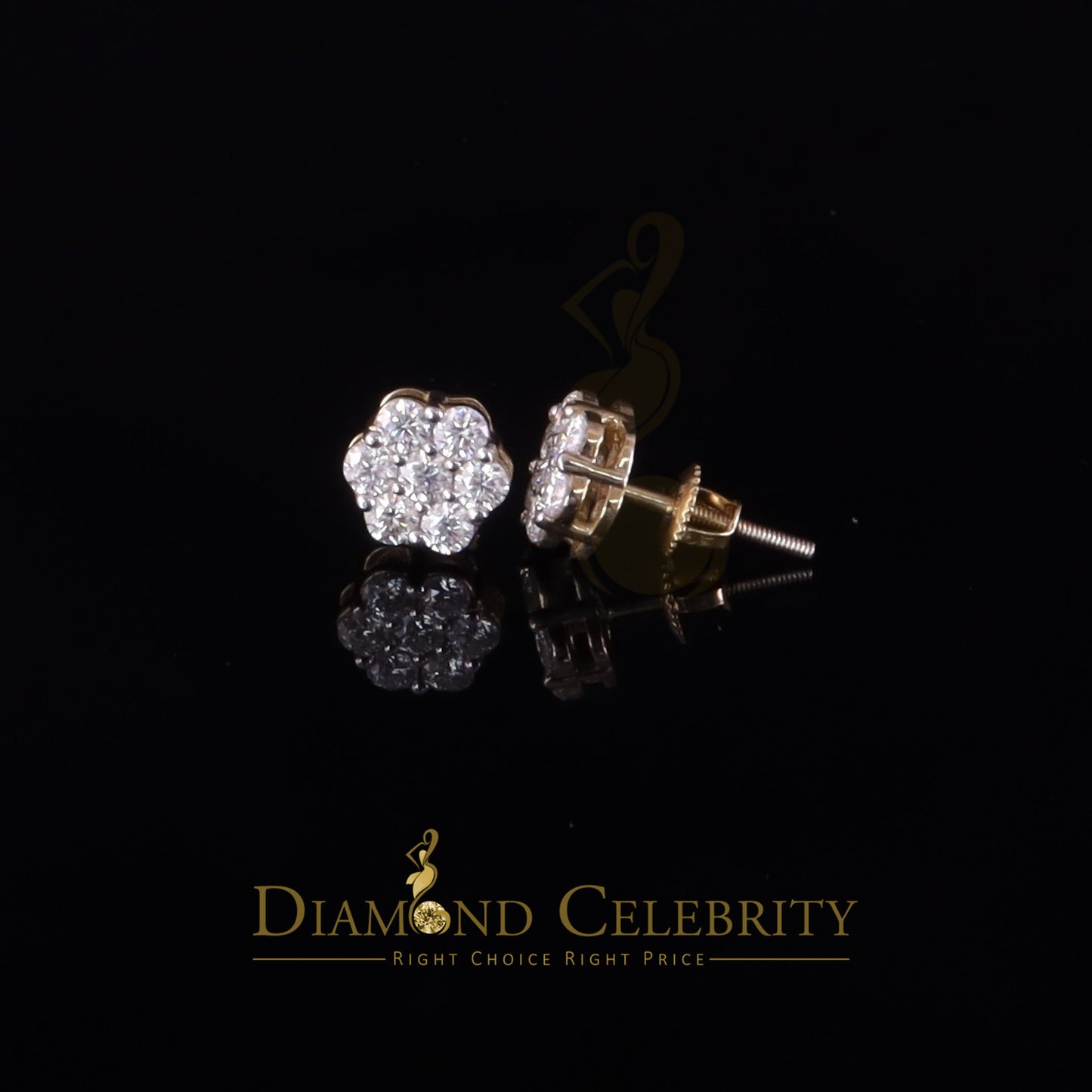 DiamondCelebritees 925 Silver Yellow 1.00ct VVS 'D' Moissanite Floral Stud Earrings Men's/Womens