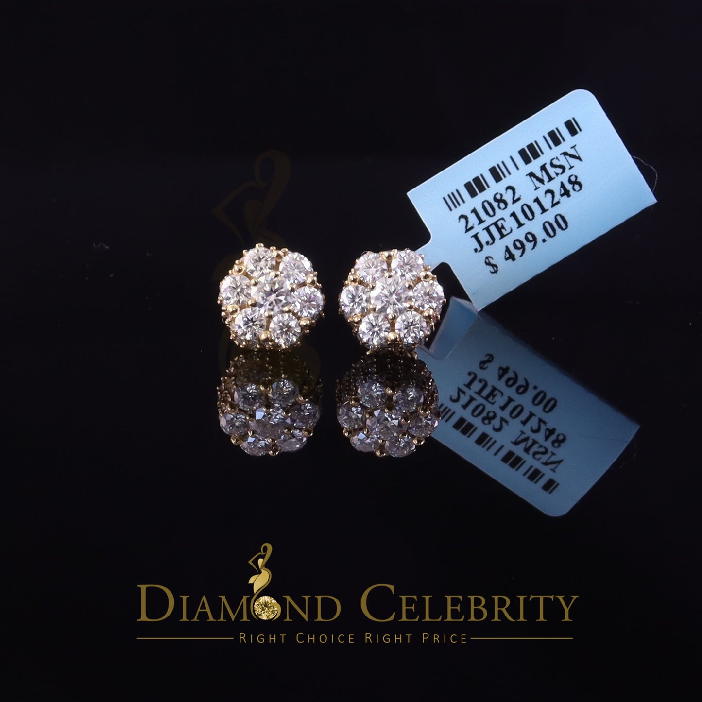 DiamondCelebritees 925 Silver Yellow 1.50ct VVS 'D' Men's & Womens Moissanite Floral Stud Earrings