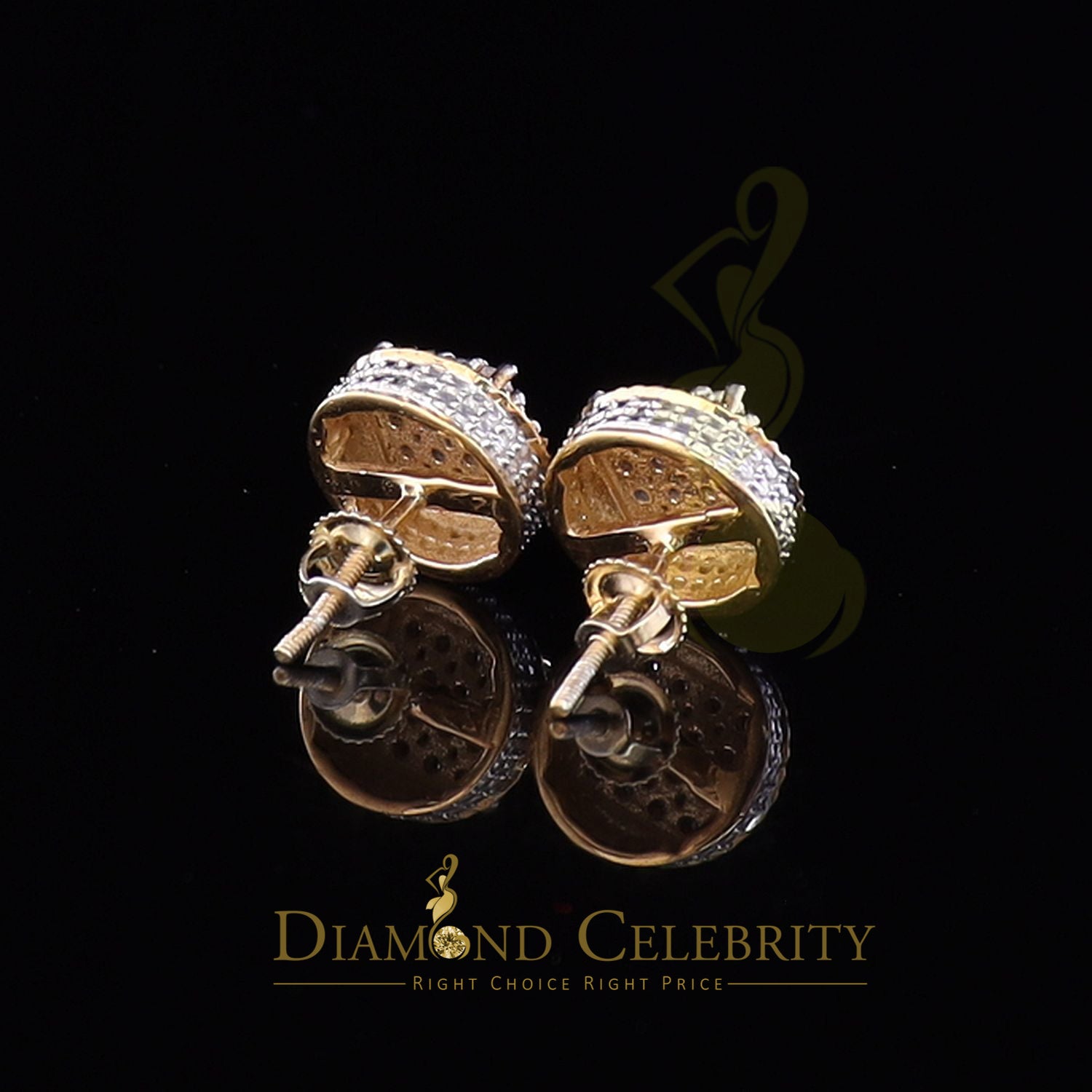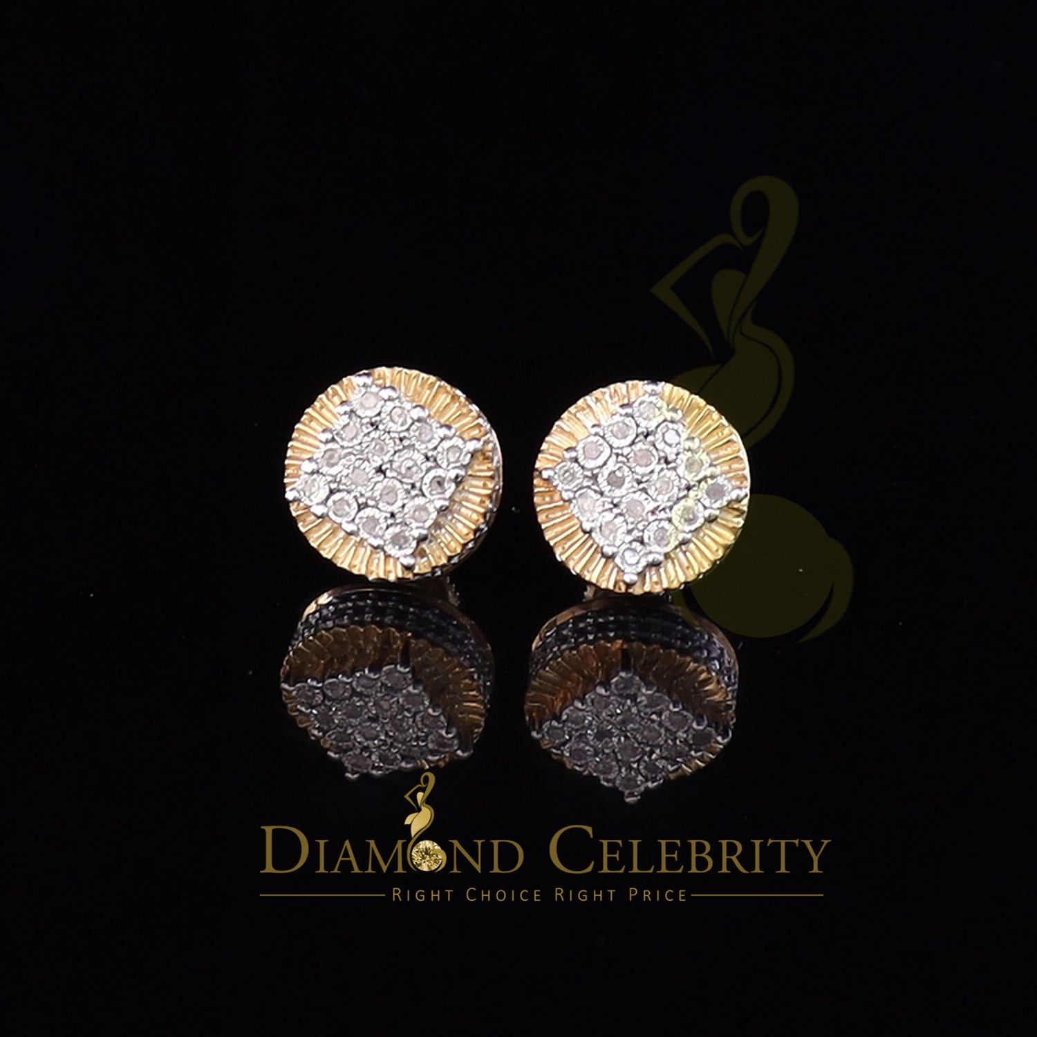 DiamondCelebritees 925 Sterling Silver Yellow Hip Hop 0.15ct Diamond Men's & Women's Round Earrings