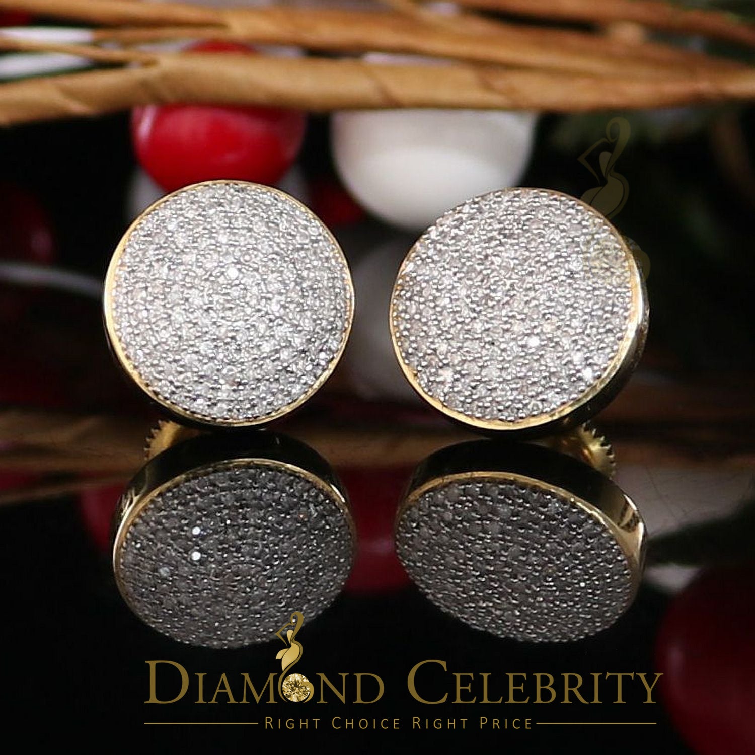 DiamondCelebritees 925 Sterling Silver Yellow Hip Hop 0.66ct Diamond Men's/ Women's Stud Earrings
