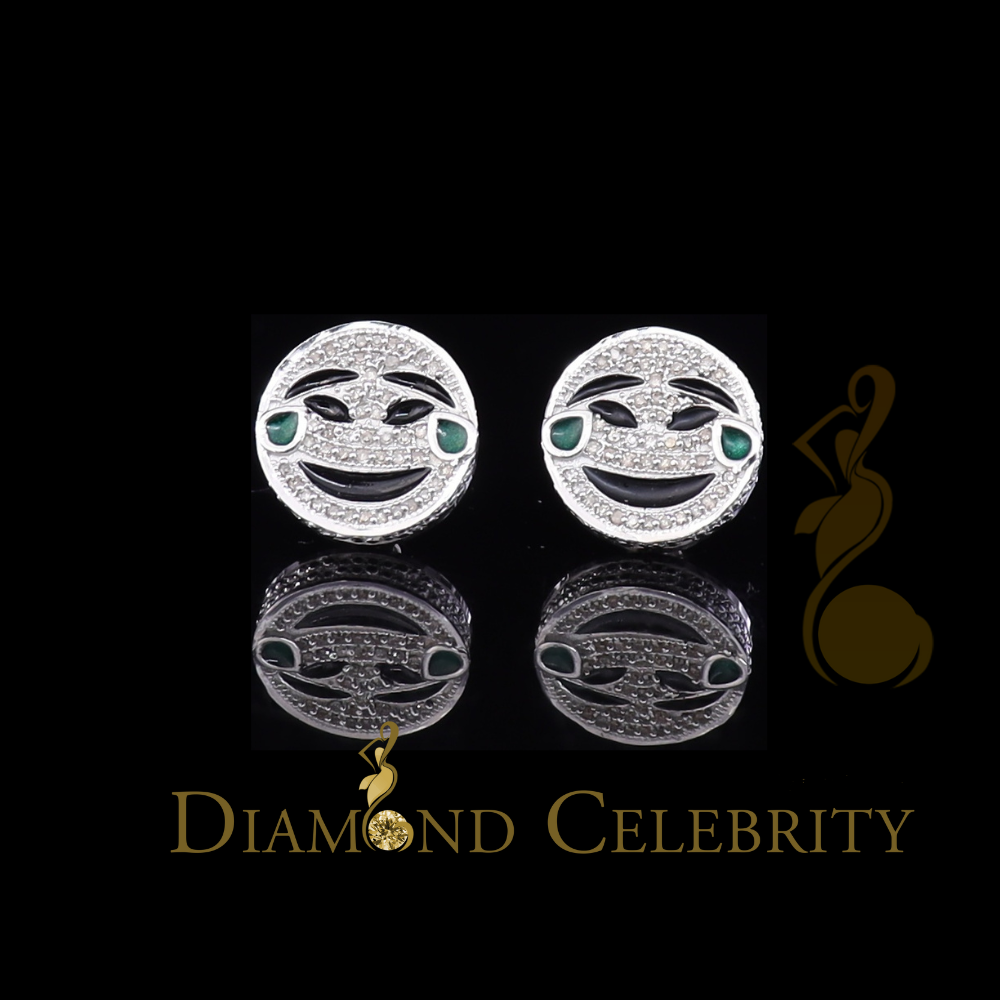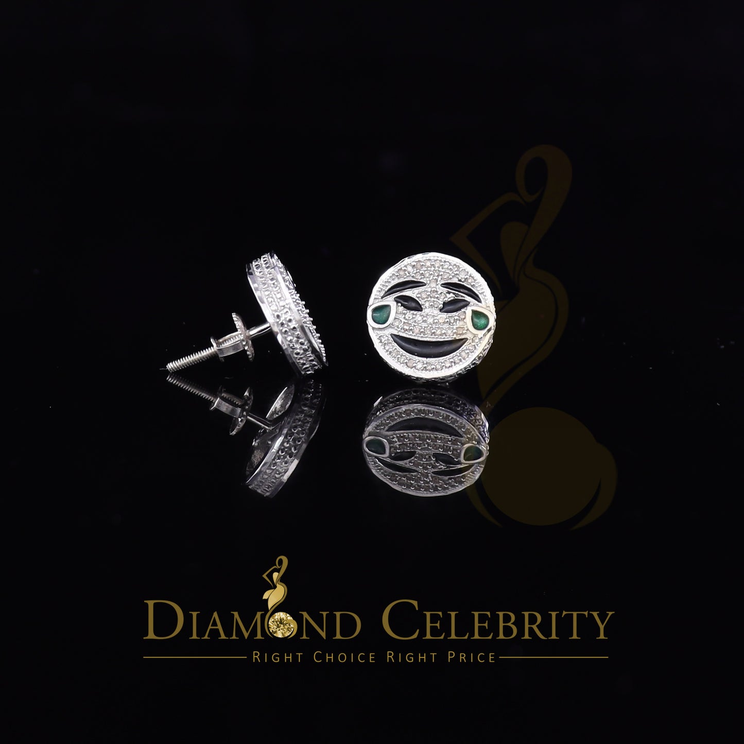 DiamondCelebritees 925 Sterling White Silver 0.33ct Diamond Hip Hop Men's & Women's Emoji Earrings