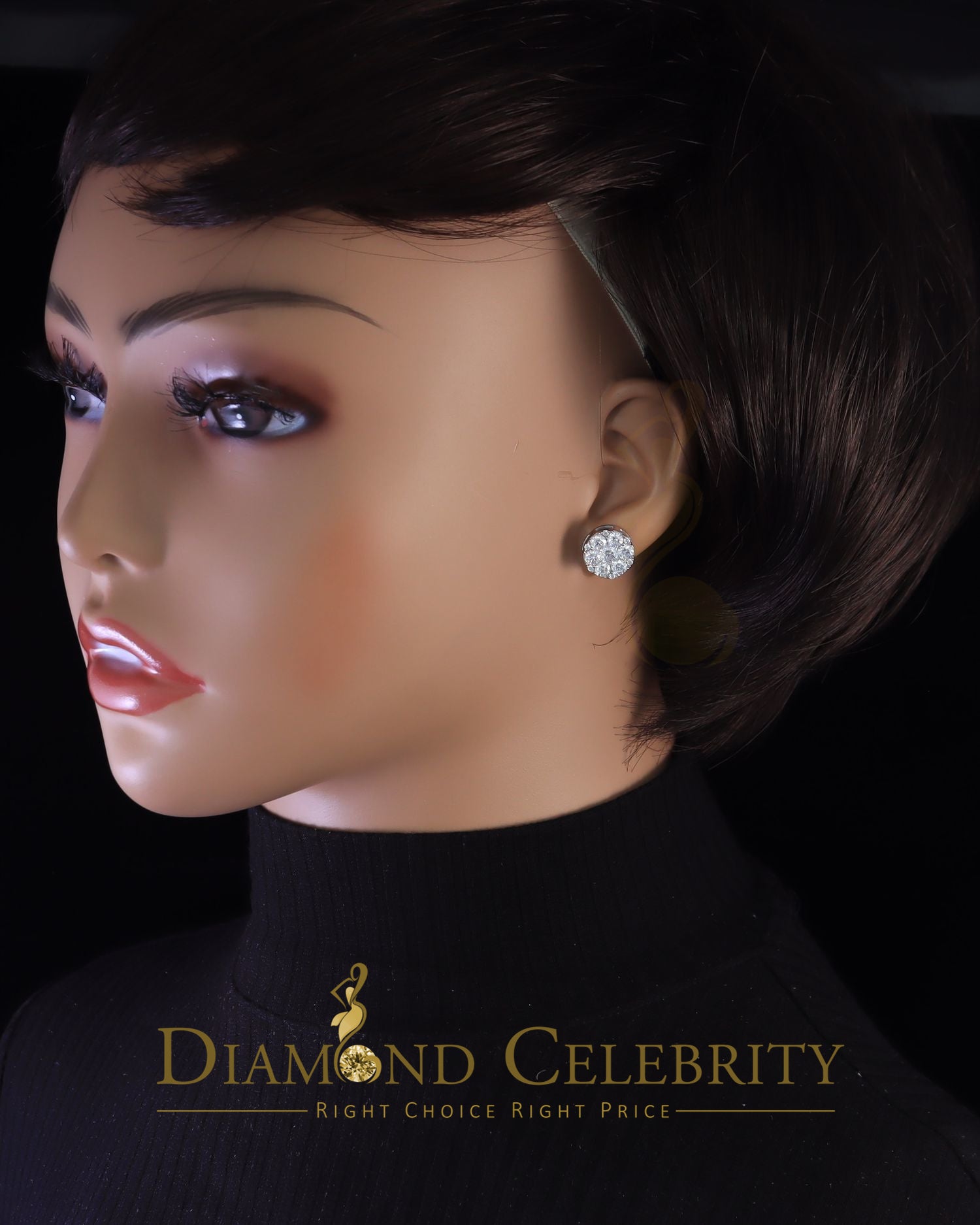 DiamondCelebritees 925 Sterling White Silver Cubic Zirconia Women & Men Round Stud Earrings