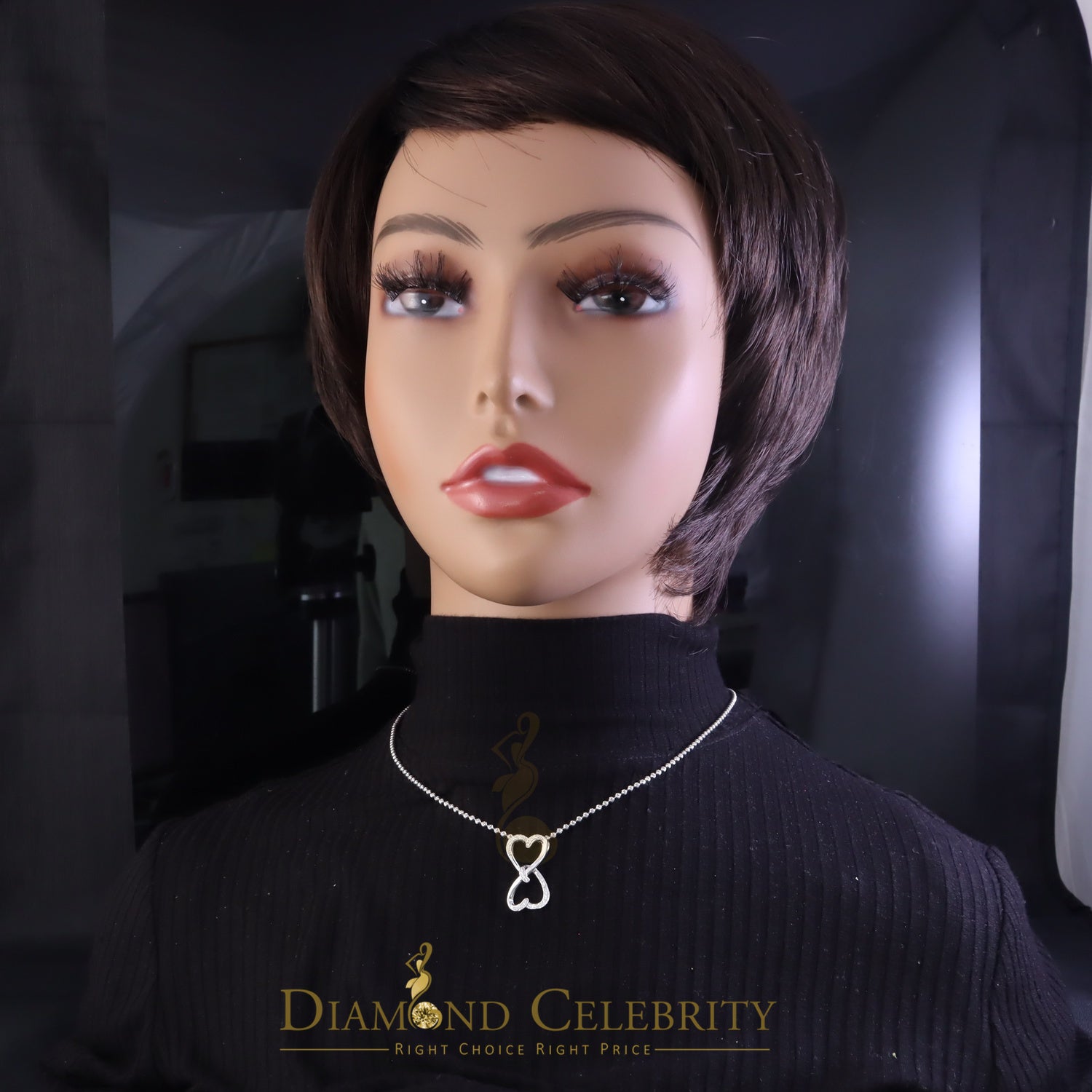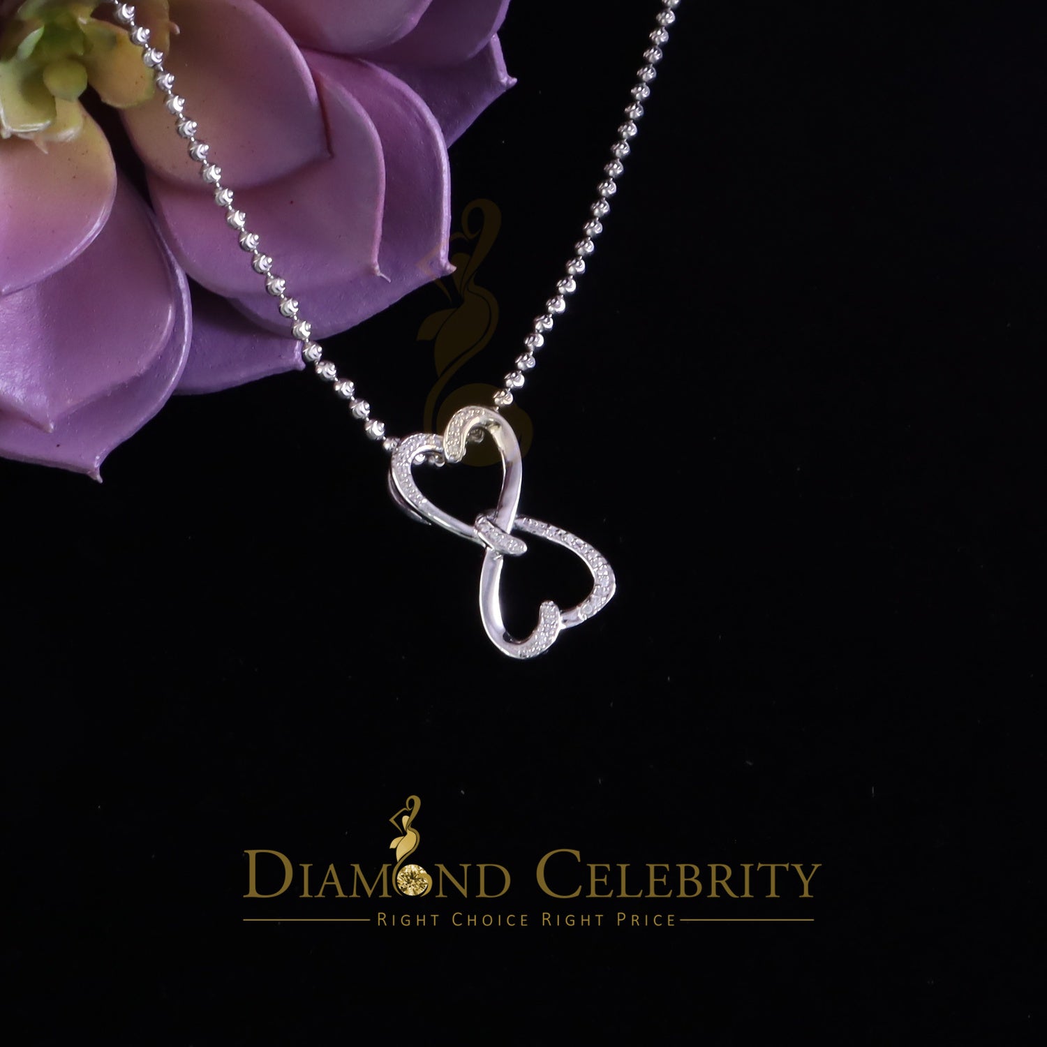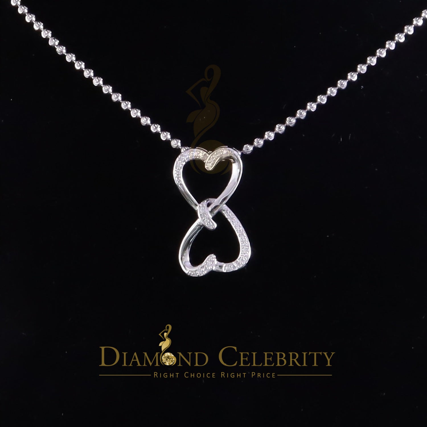 DiamondCelebritees 925 Sterling White Silver Pendant with Dual Heart Shape 0.00ct Cubic Zirconia
