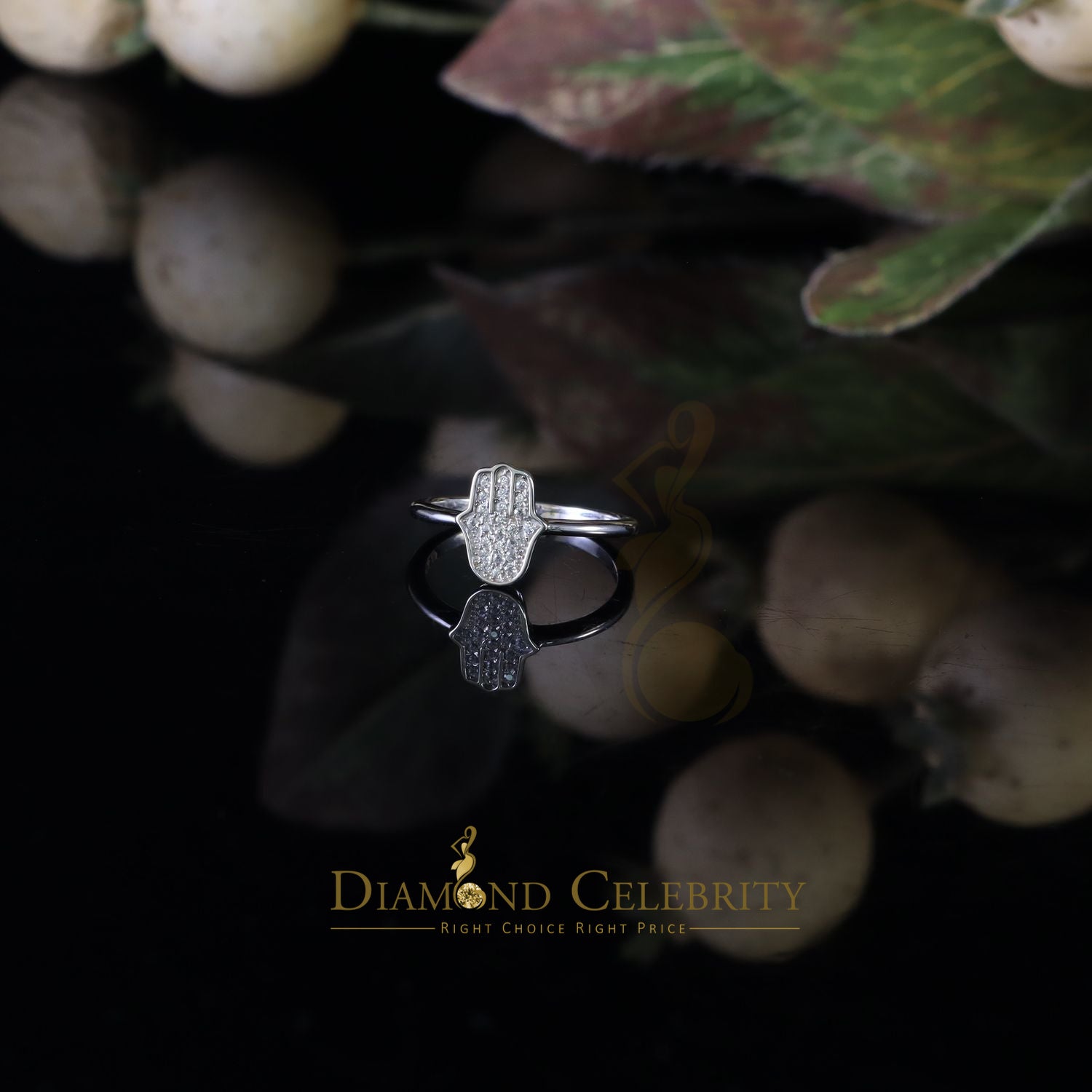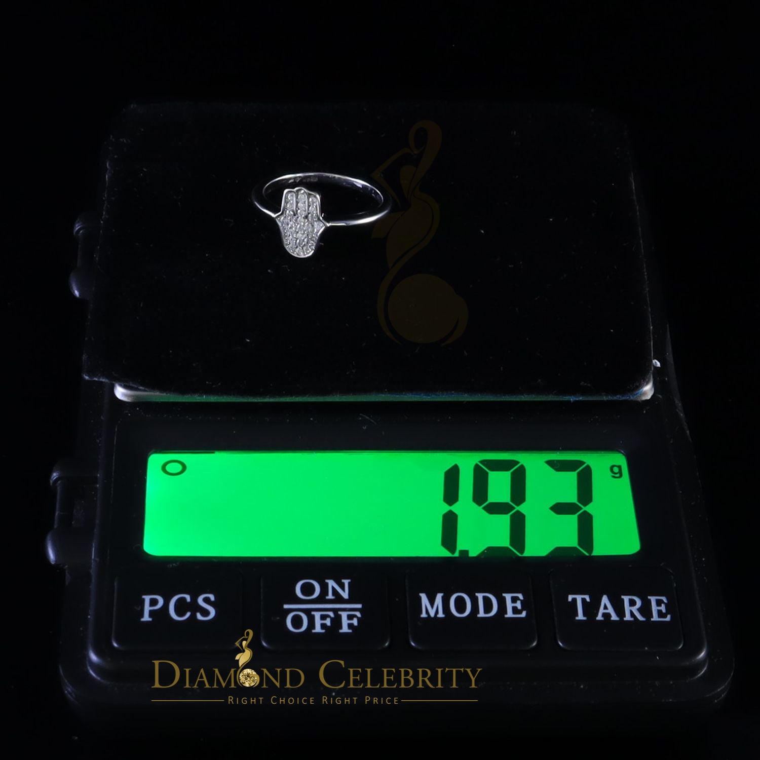 DiamondCelebritees 925 Sterling White Silver Shiny Hamsa 0.40ct Cubic Zirconia Women's Ring Size 6