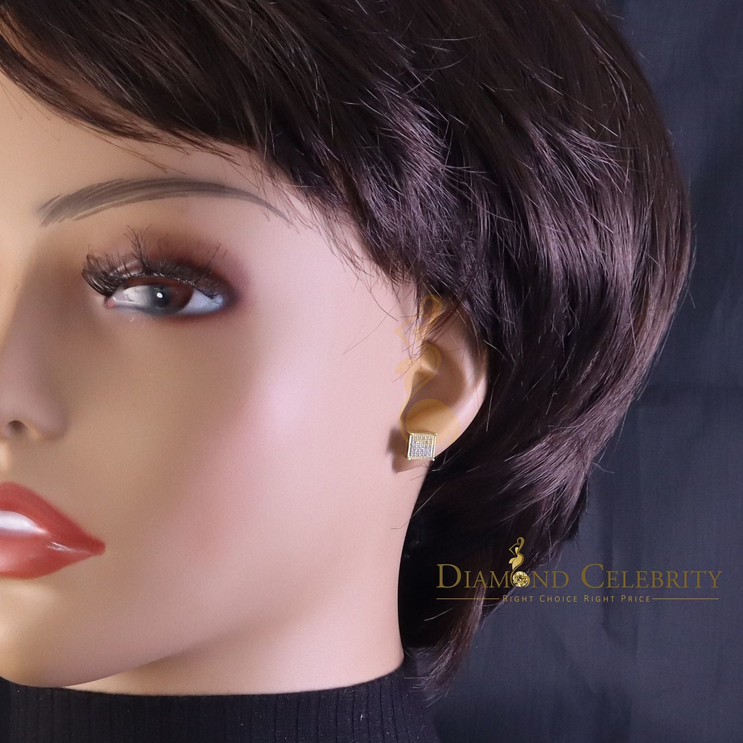 DiamondCelebritees 925 Sterling Yellow Silver 0.15ct Diamond Womens and Men's Square Stud Earrings
