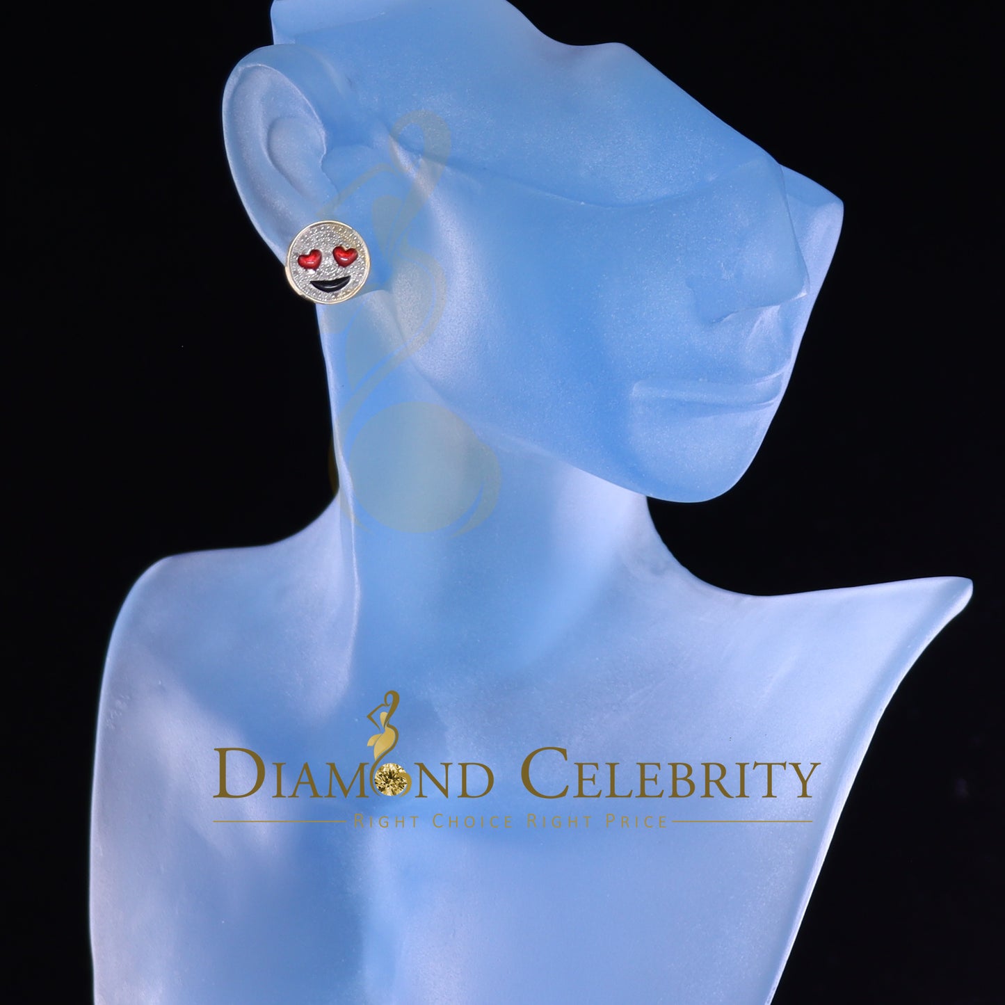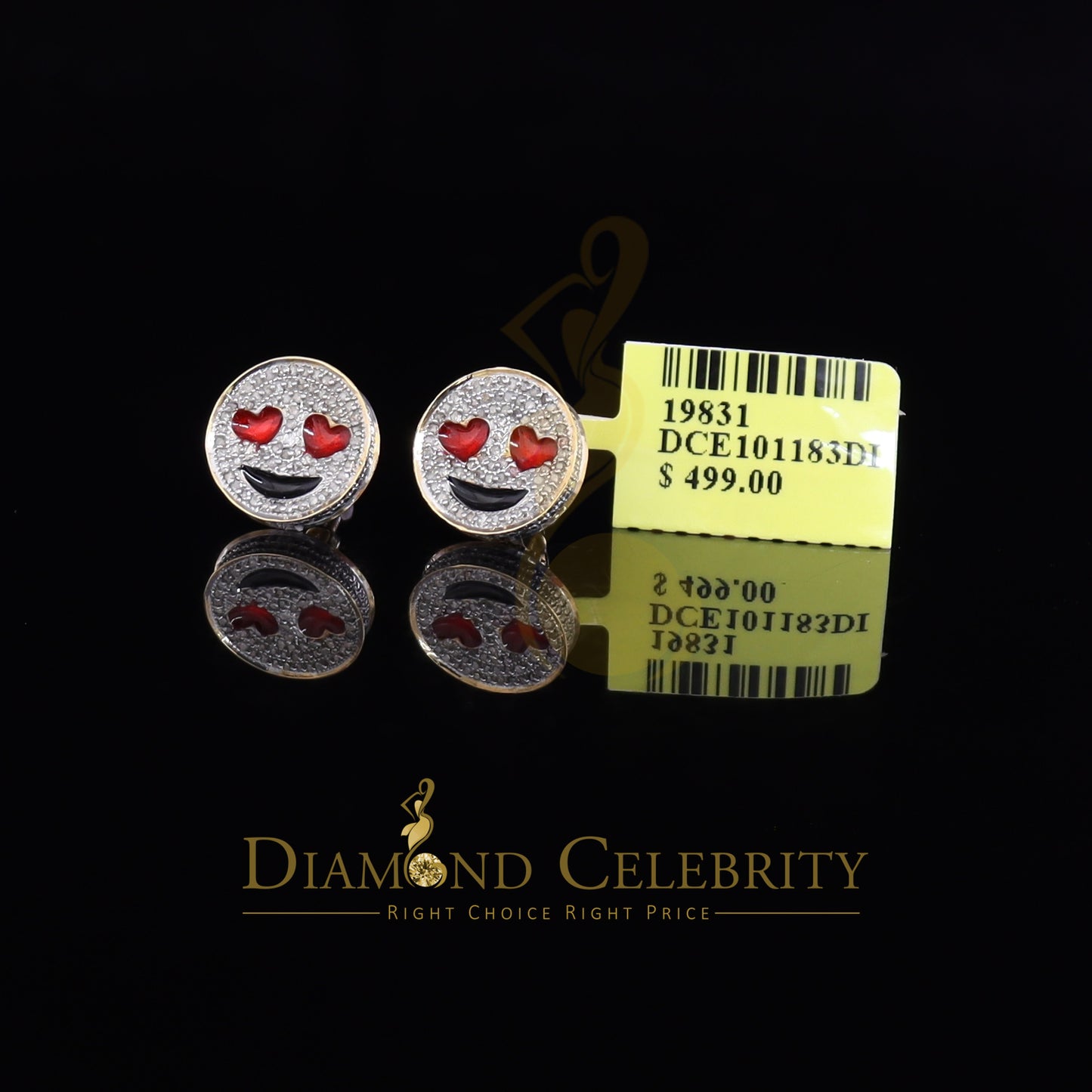 DiamondCelebritees 925 Sterling Yellow Silver 0.33ct Diamond Men's & Women's Love Emoji Earrings