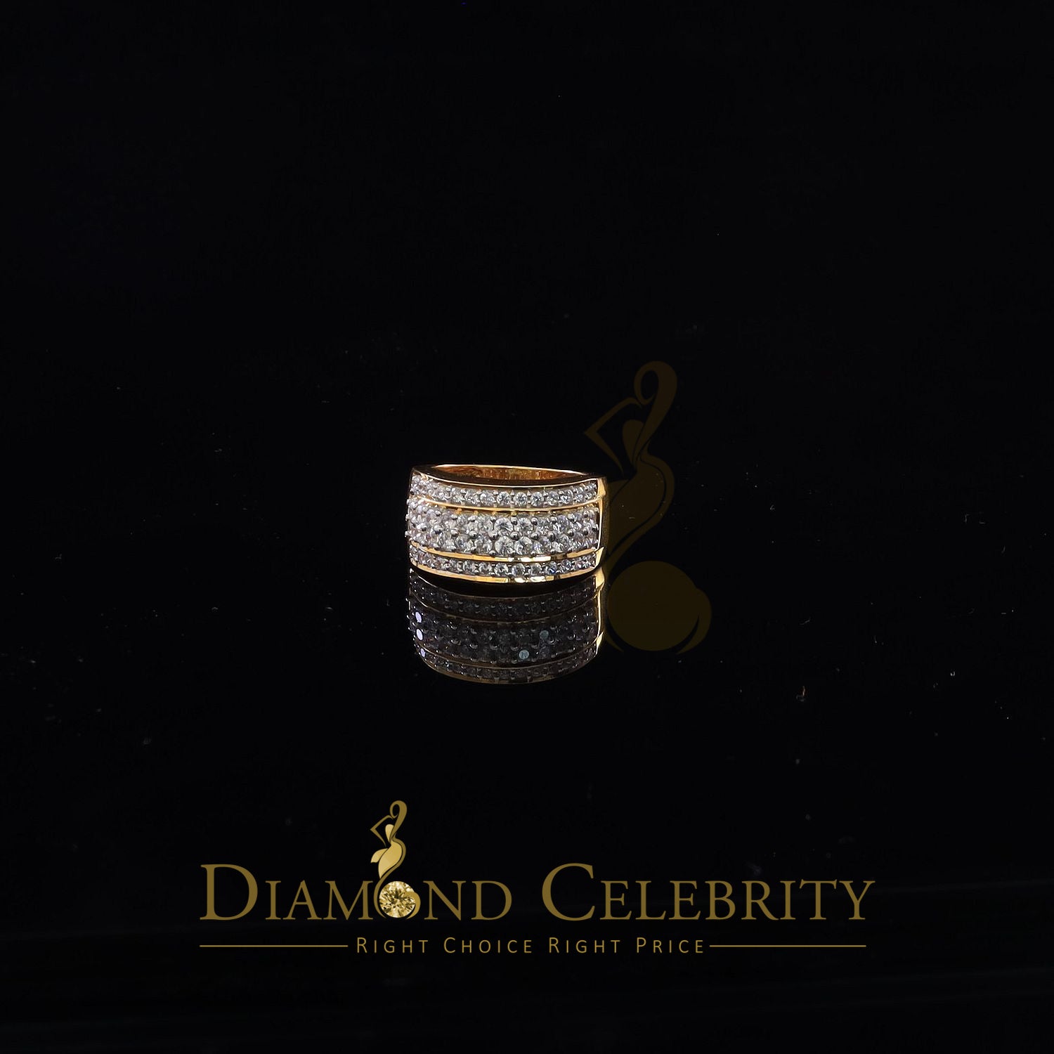 DiamondCelebritees 925 Sterling Yellow Silver 6.00ct Cubic Zirconia Round For Men's Ring Size 8