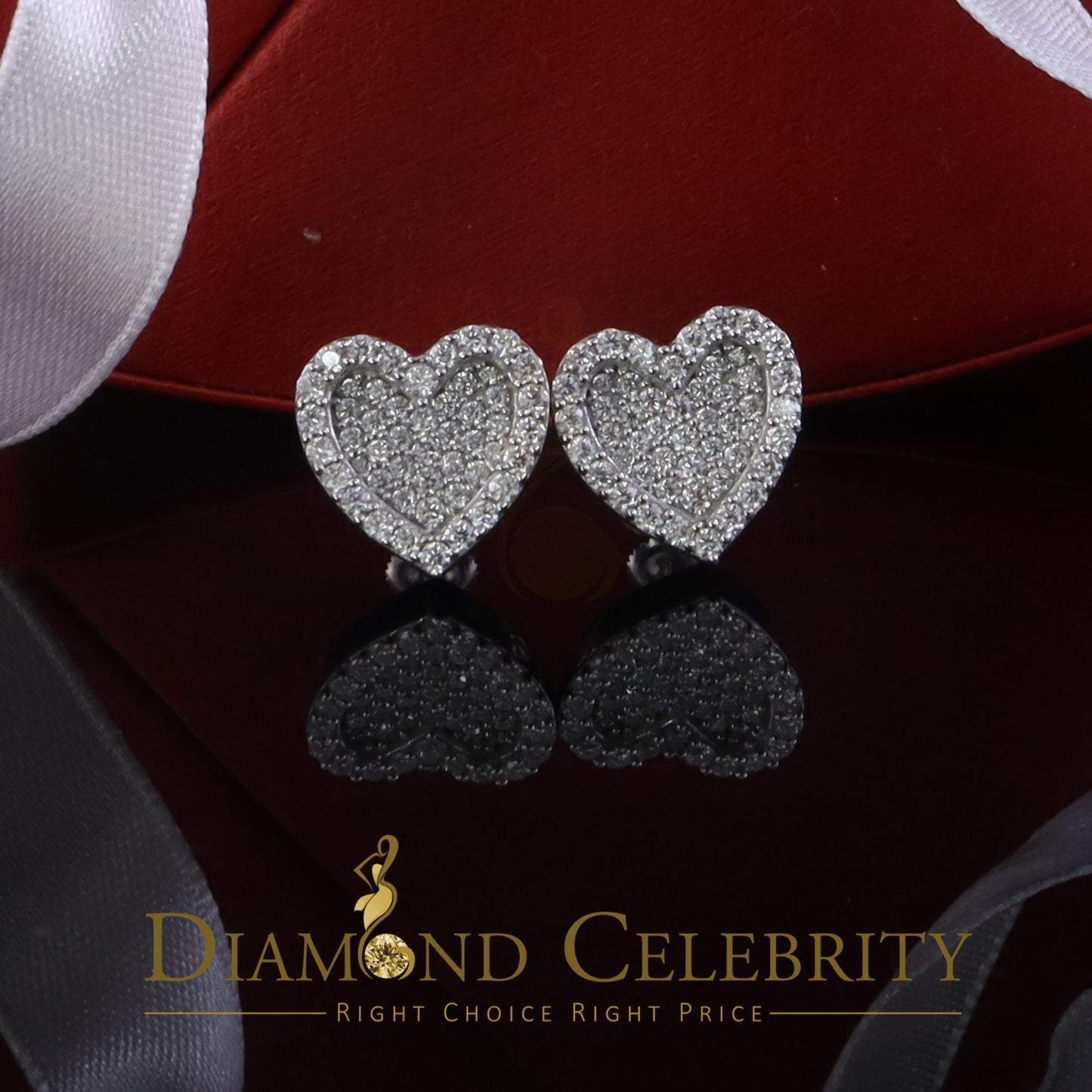 Diamondcelebritees 925 White Silver 1.00ct VVS 'D' Moissanite Heart Stud Earring Men's/Womens