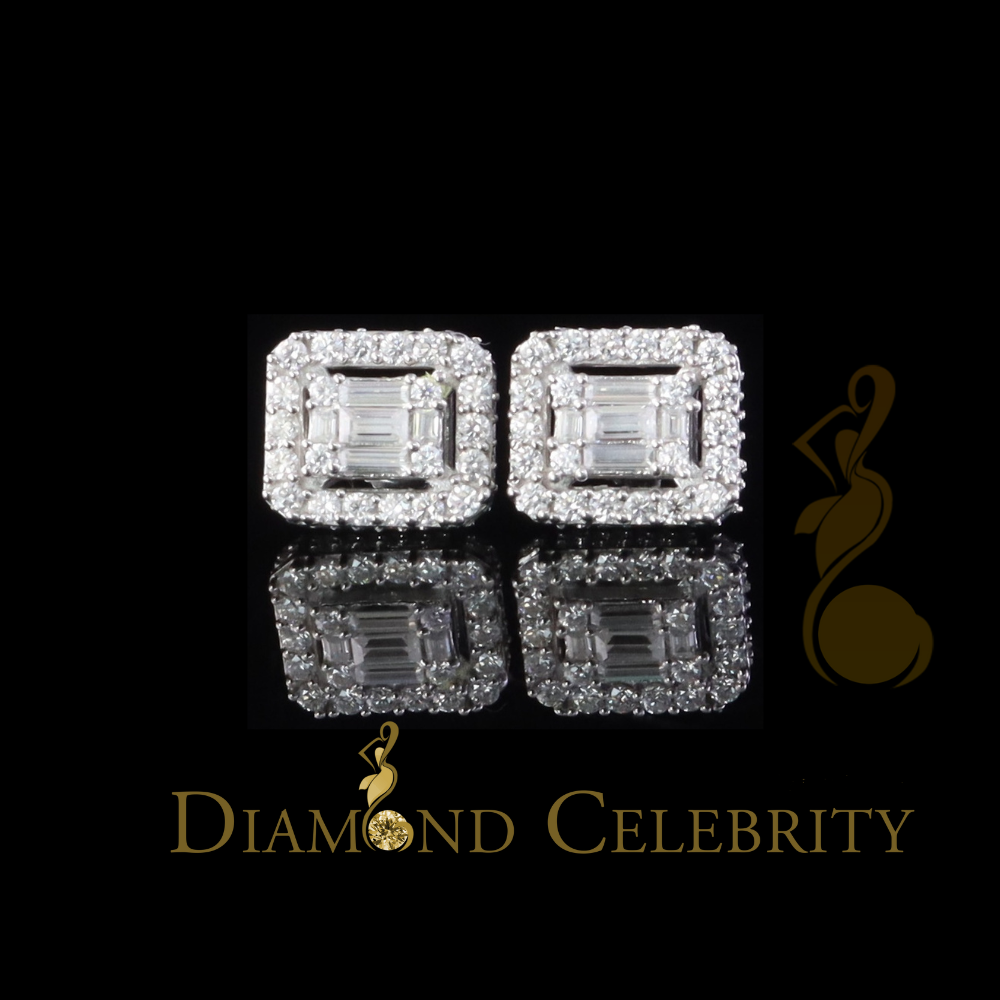 Diamondcelebritees 925 White Silver 1.25ct VVS 'D' Moissanite Square Stud Earring Men's/Womens