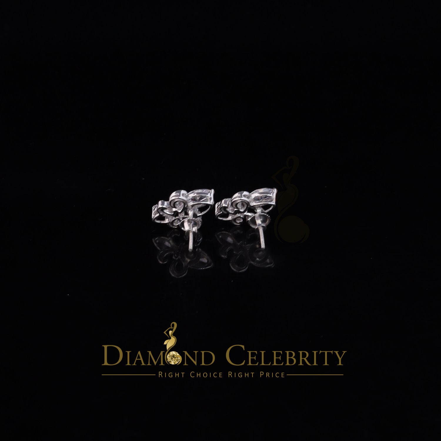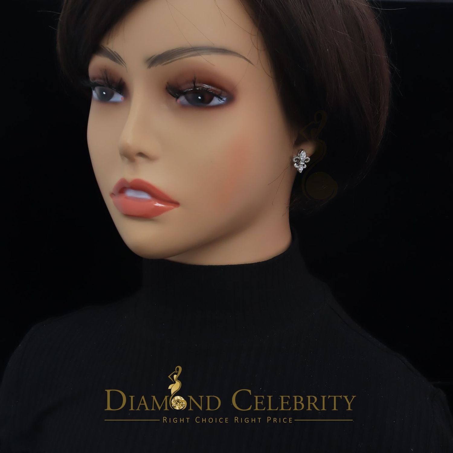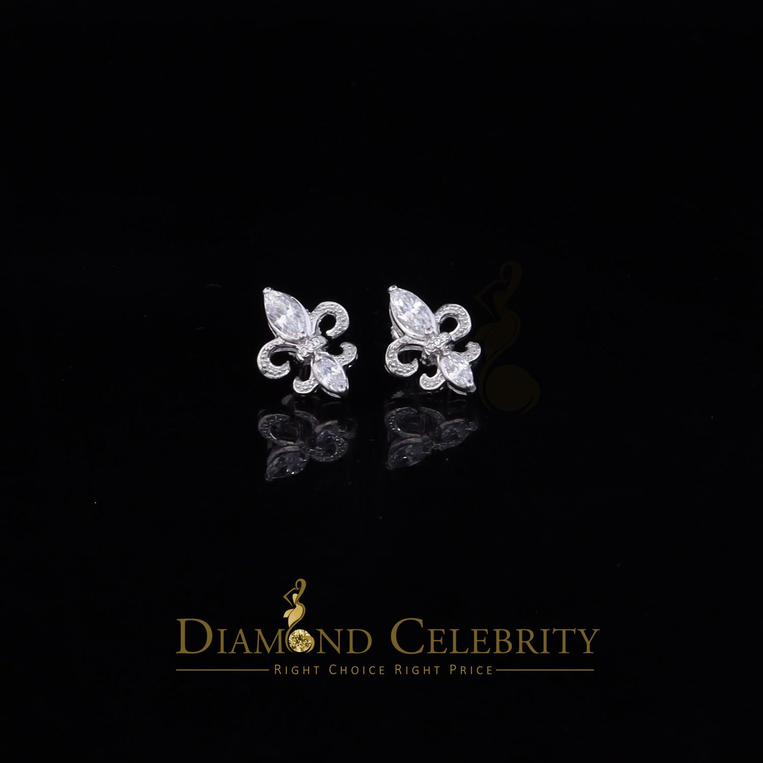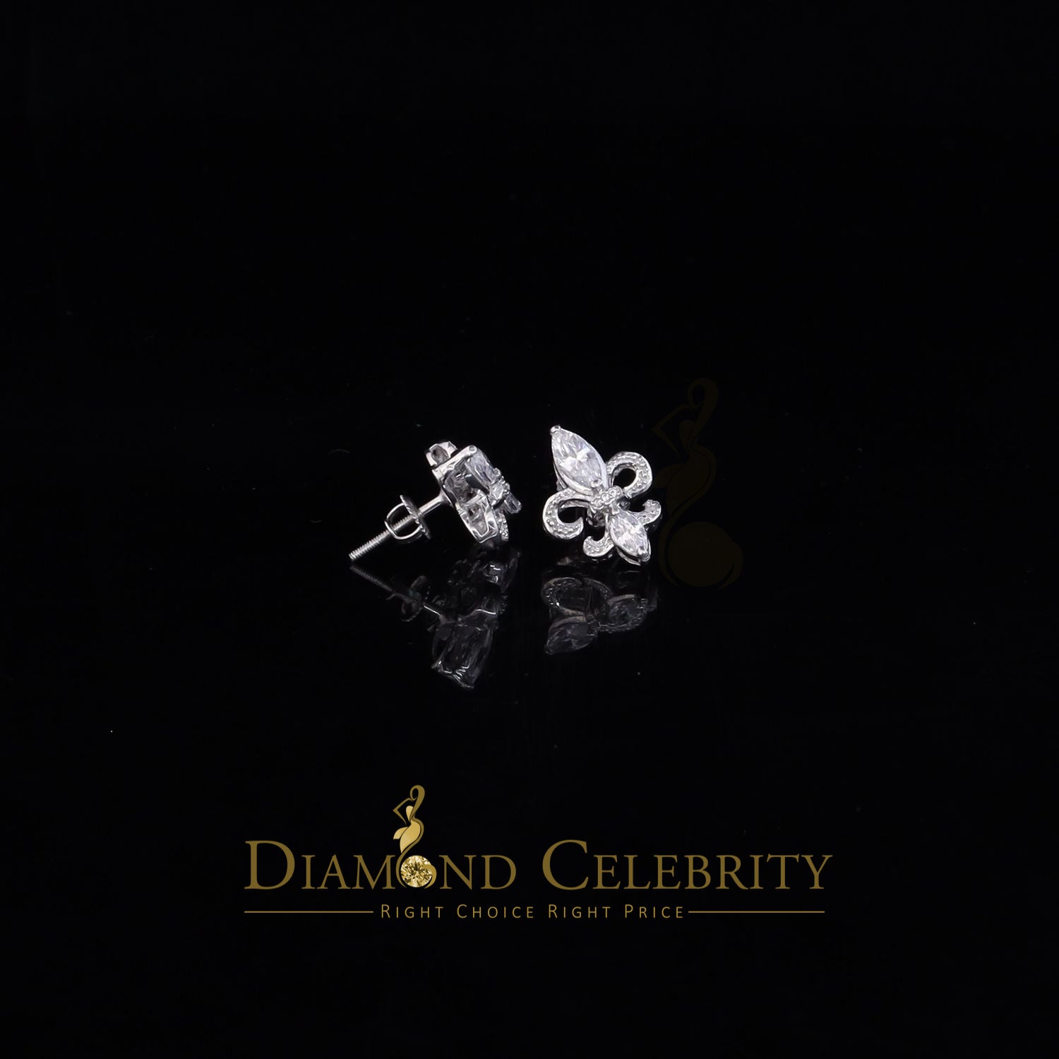 DiamondCelebritees 925 White Silver Womens Fleur de Lis Screw Back 2.43ct Cubic Zirconia Earrings