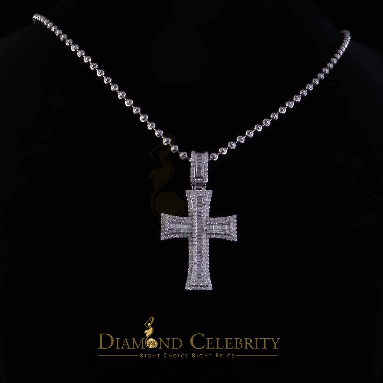 Introducing Diamondcelebritees exquisite Silver Moissanite Pendant, This new Cross pendant is a stylish unisex piece made of 925 sterling silver.with 11.02gm With timeless beauty and exceptional quality, these earrings captivate hearts. The glistening Moissanite stones of 2.25ct &VVS 'D' Clarity & Color emit a radiant sparkle. Nickel-free and rhodium-plated for durability, they are perfect for all genders and ages. Symbolizing April's birthstone, they make a meaningful gift. Versatile for any occasion, they arrive brand new in original packaging, promising an enchanting experience.with GRA Certificate adorning these Pendant emanate a radiant sparkle,