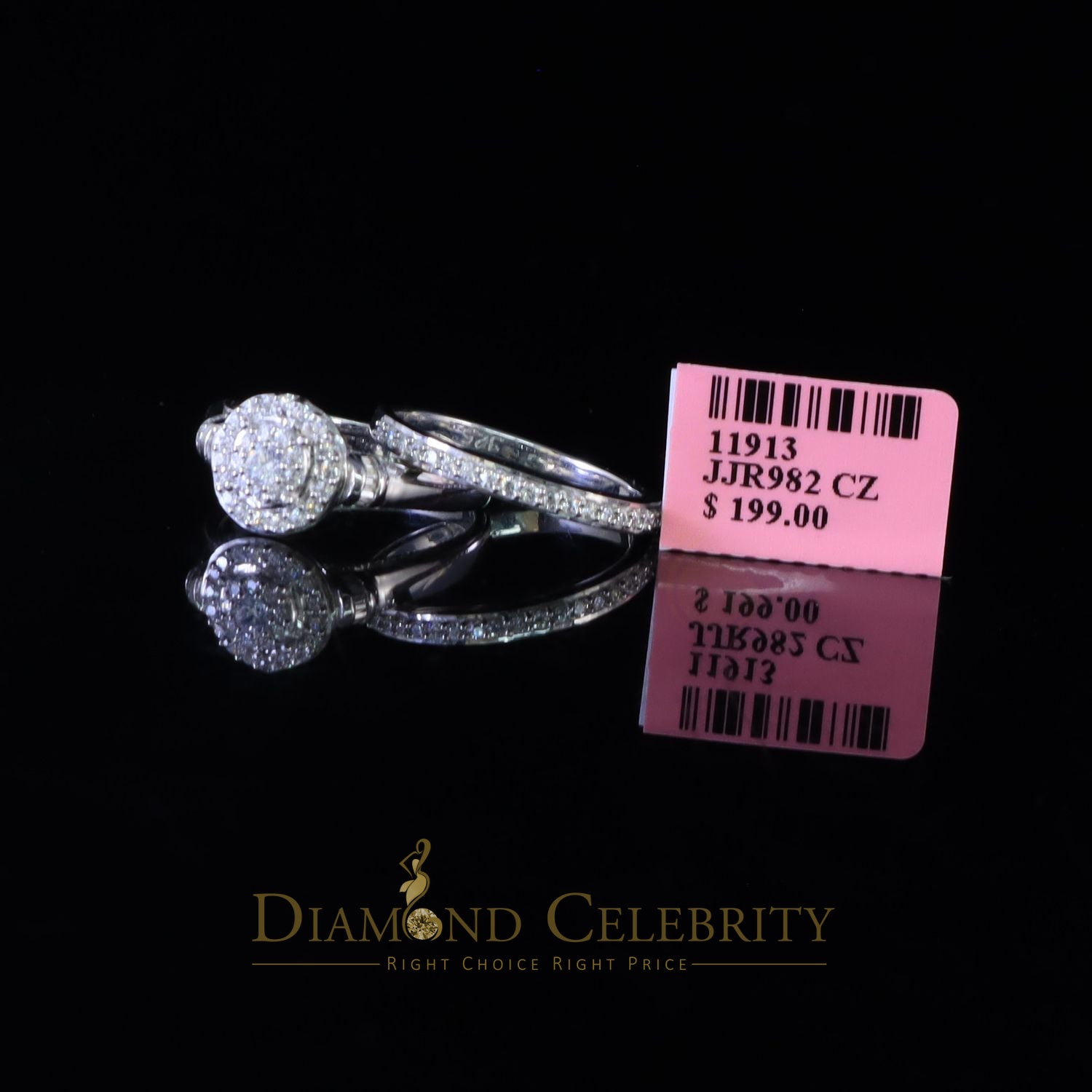 DiamondCelebritees 925 Women's White Silver 1.25ct CZ Round shape 2pcs Bridal /Engagement Ring SZ 7