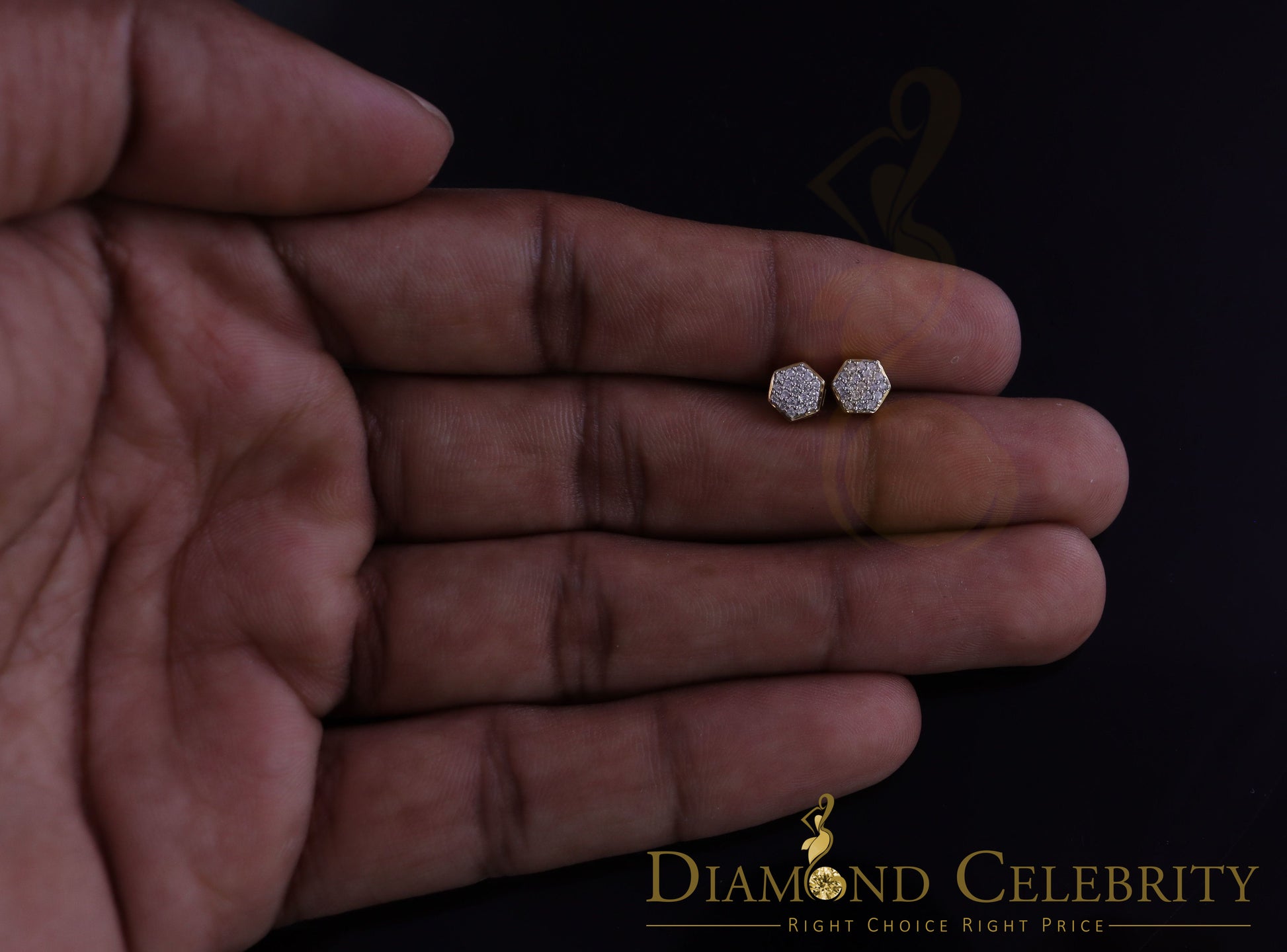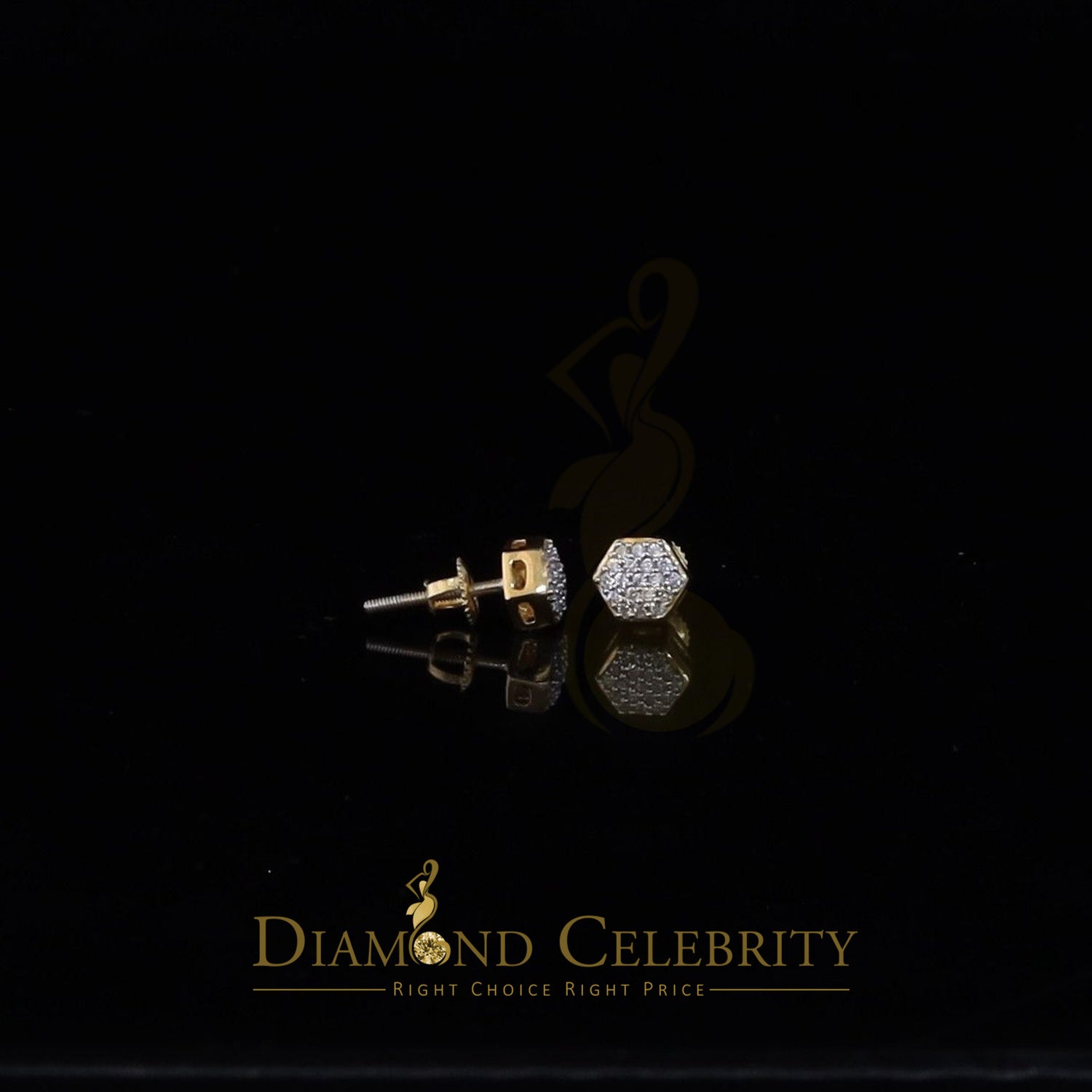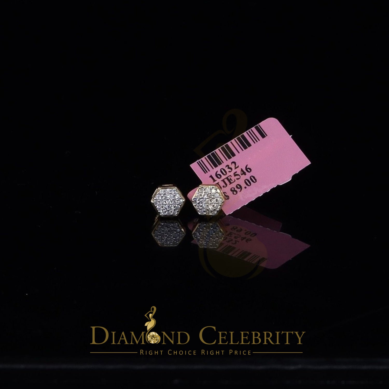 DiamondCelebritees 925 Yellow Silver 0.38ct Cubic Zirconia Women's & Men Hip Hop Hexagon Earrings