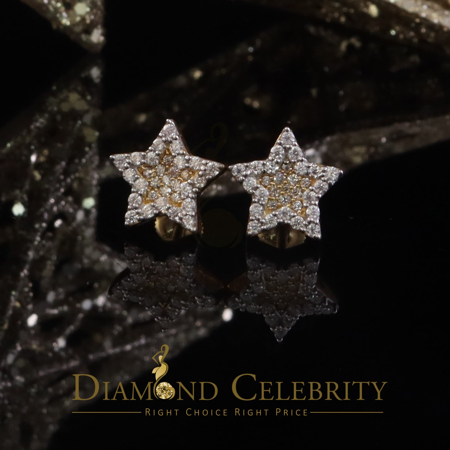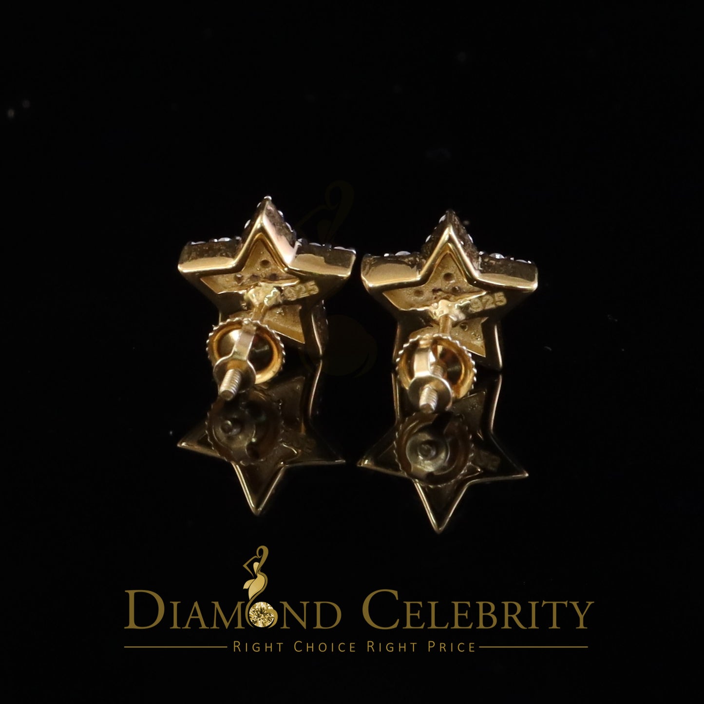DiamondCelebritees 925 Yellow Silver 0.66ct VVS 'D' Moissanite Star Stud Earring Men's/Womens