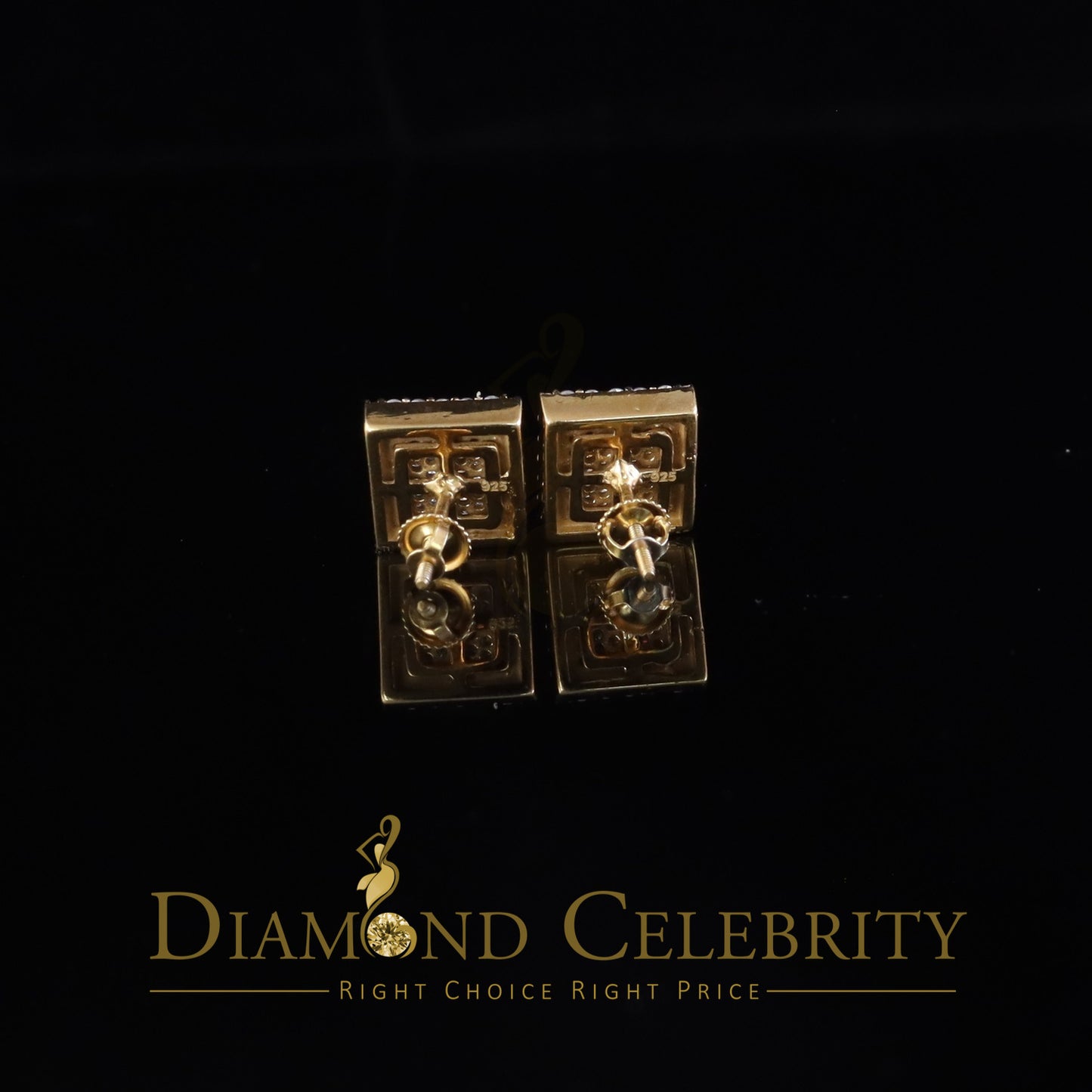 DiamondCelebritees 925 Yellow Silver 1.00ct VVS 'D' Moissanite Square Stud Earring Men's/Womens