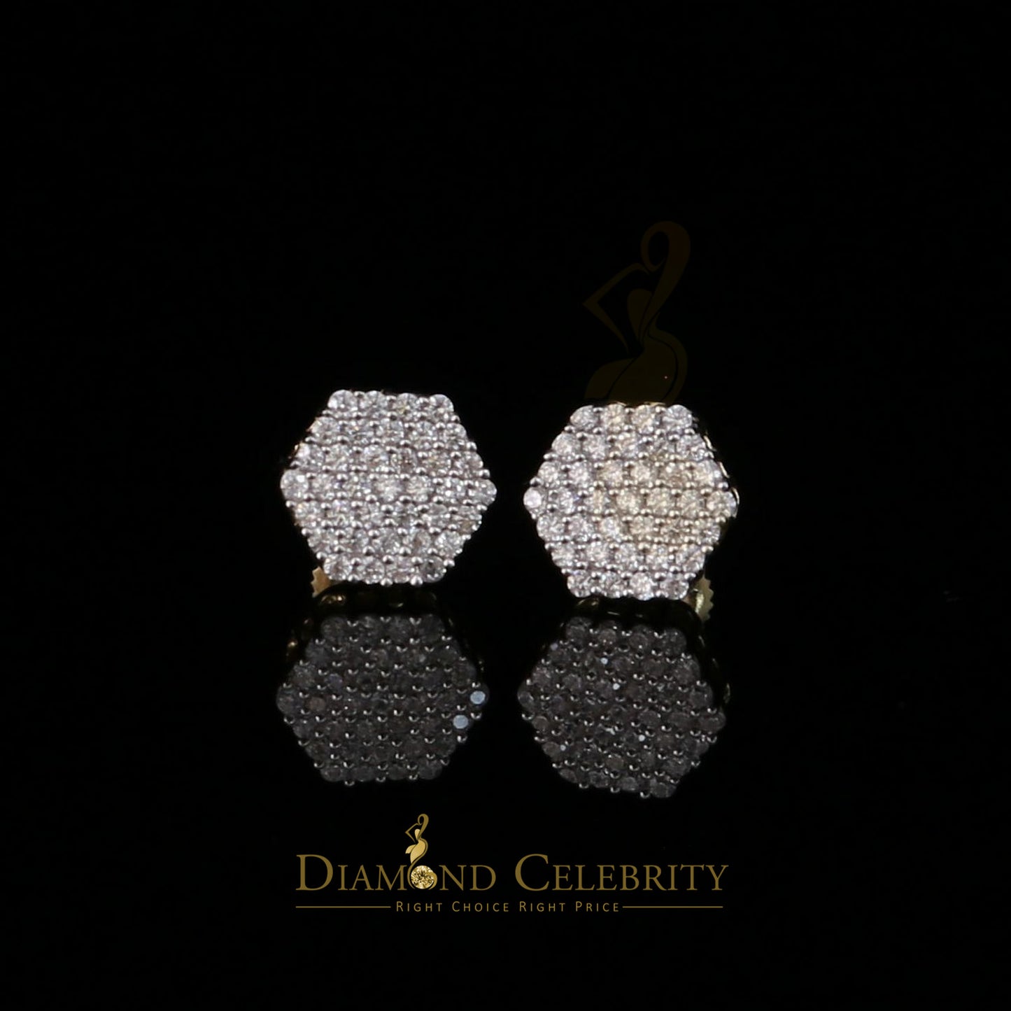 DiamondCelebritees 925 Yellow Silver Hip Hop 0.74ct Cubic Zirconia Women's & Men's Hexagon Earrings