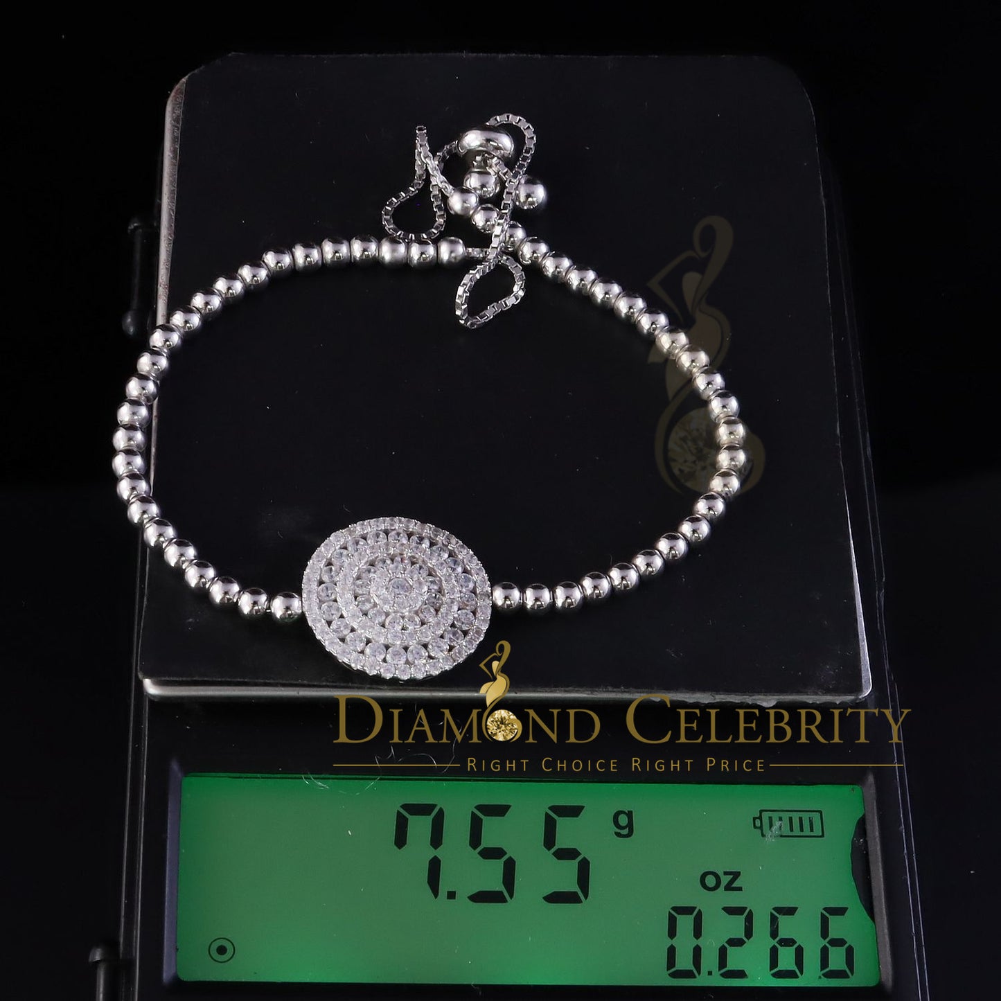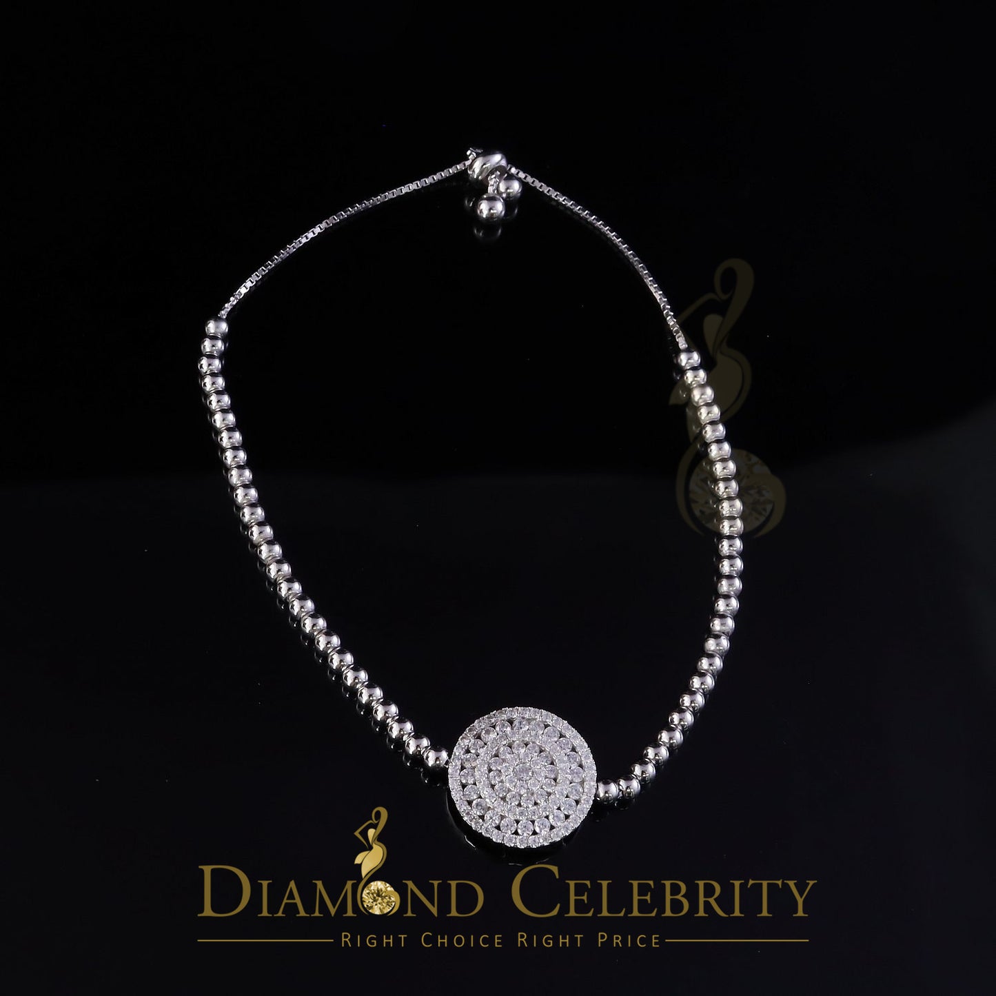 Diamondcelebritees Adjustable Round Tennis Style White Sterlng Silver Cubic Zirconia Bracelete