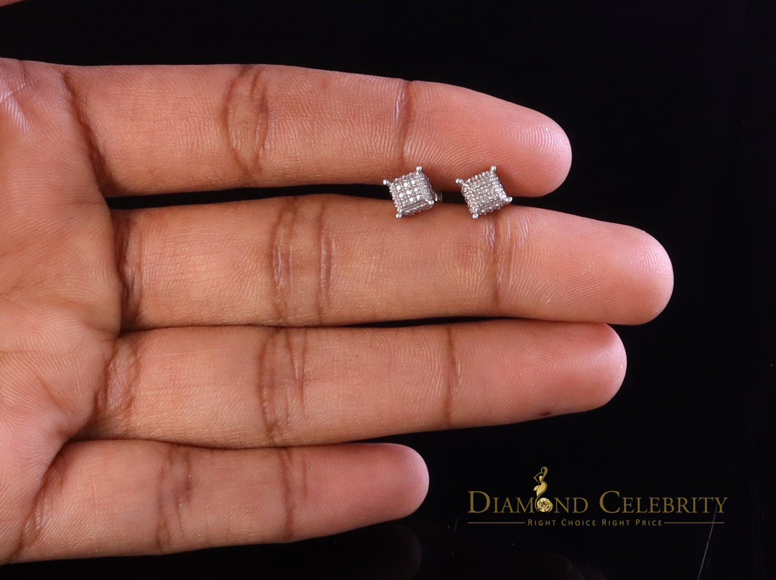 DiamondCelebritees Aretes Para Hombre 0.05ct Diamond 925 Silver Women & Men Square White Earrings