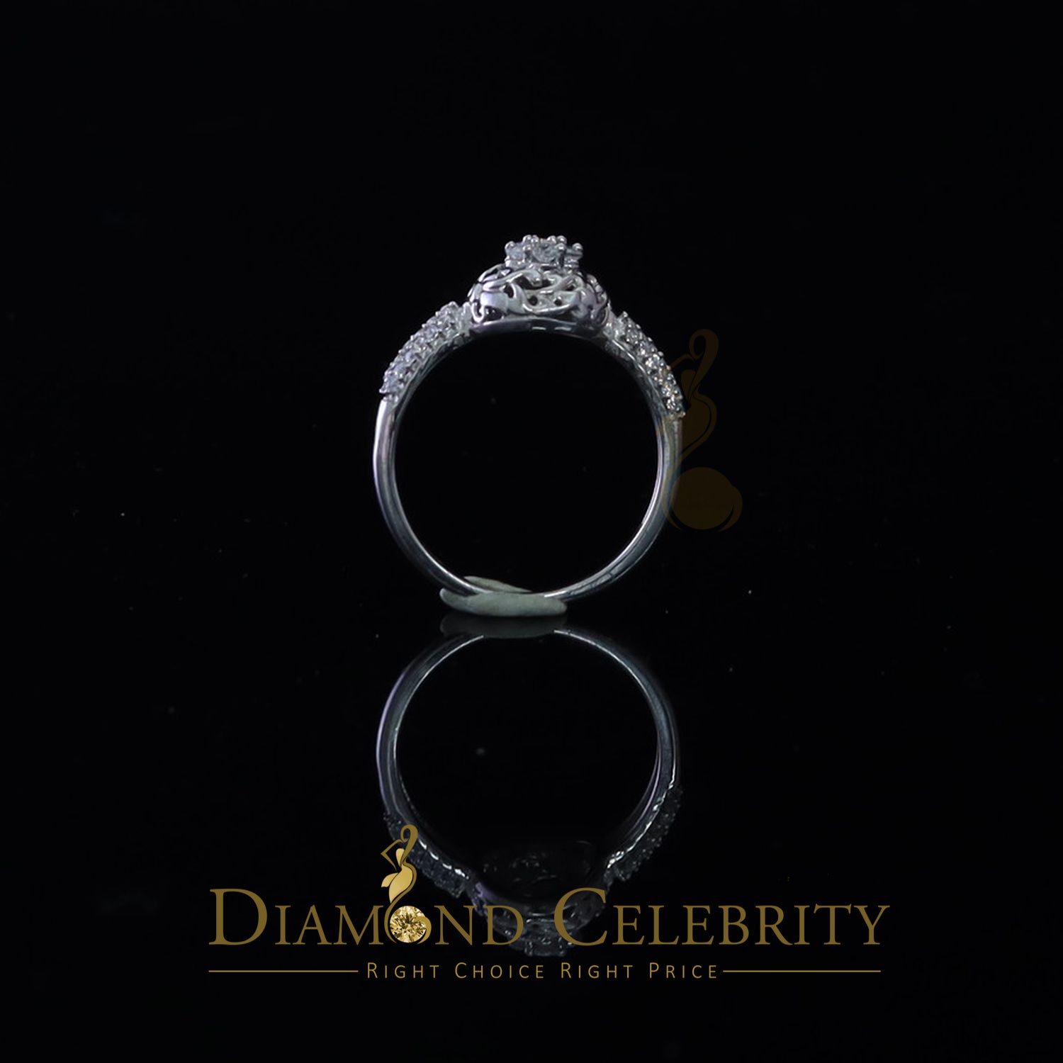 DiamondCelebritees Cubic Zirconia 925 Sterling White Silver Round Engagement Women's Ring Size 7