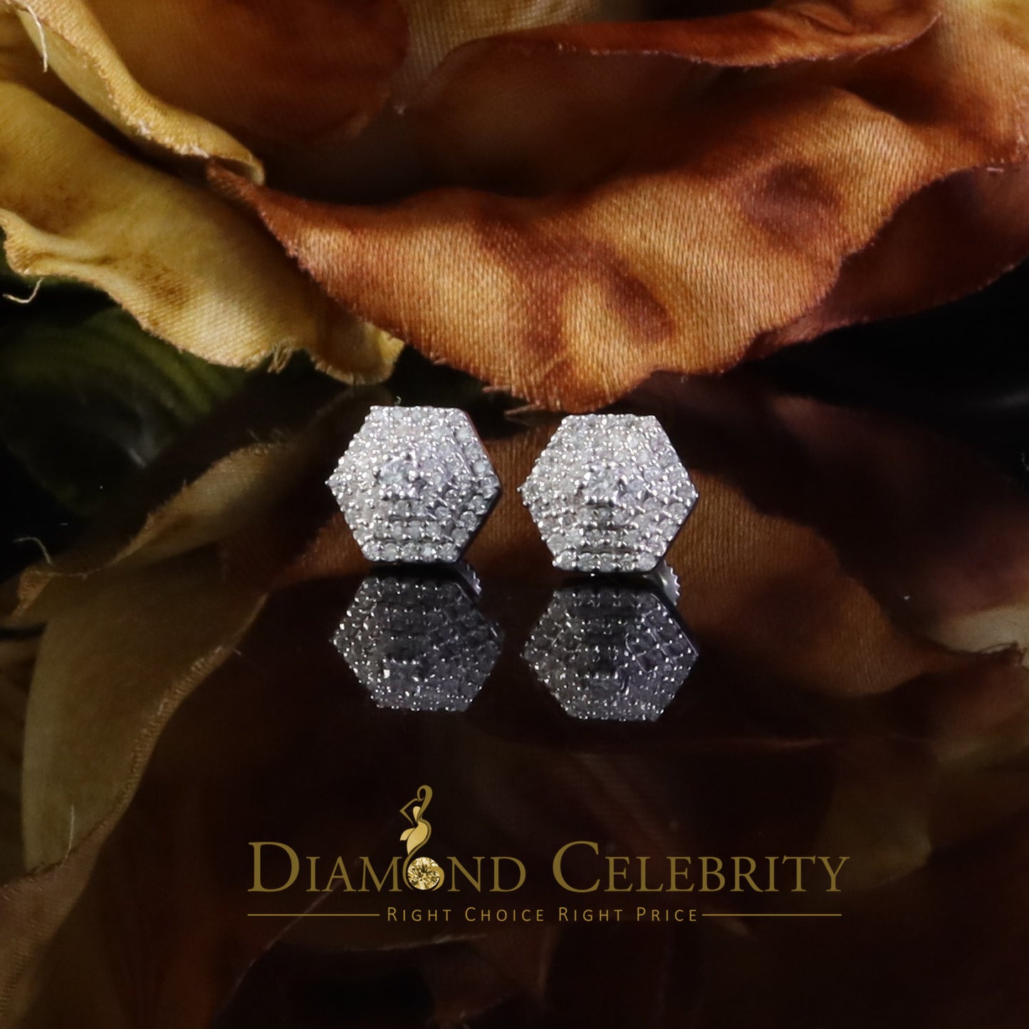 Diamondcelebritees Hexogonal Men's/Womens Stud Earrings 0.50ct VVS 'D' Moissanite 925 White Silver