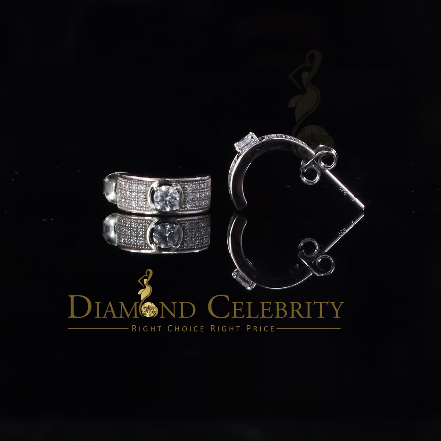 DiamondCelebritees Hip hop Mens white Gold 925 Sterling Silver Iced 2 row Huggie Hoop earrings