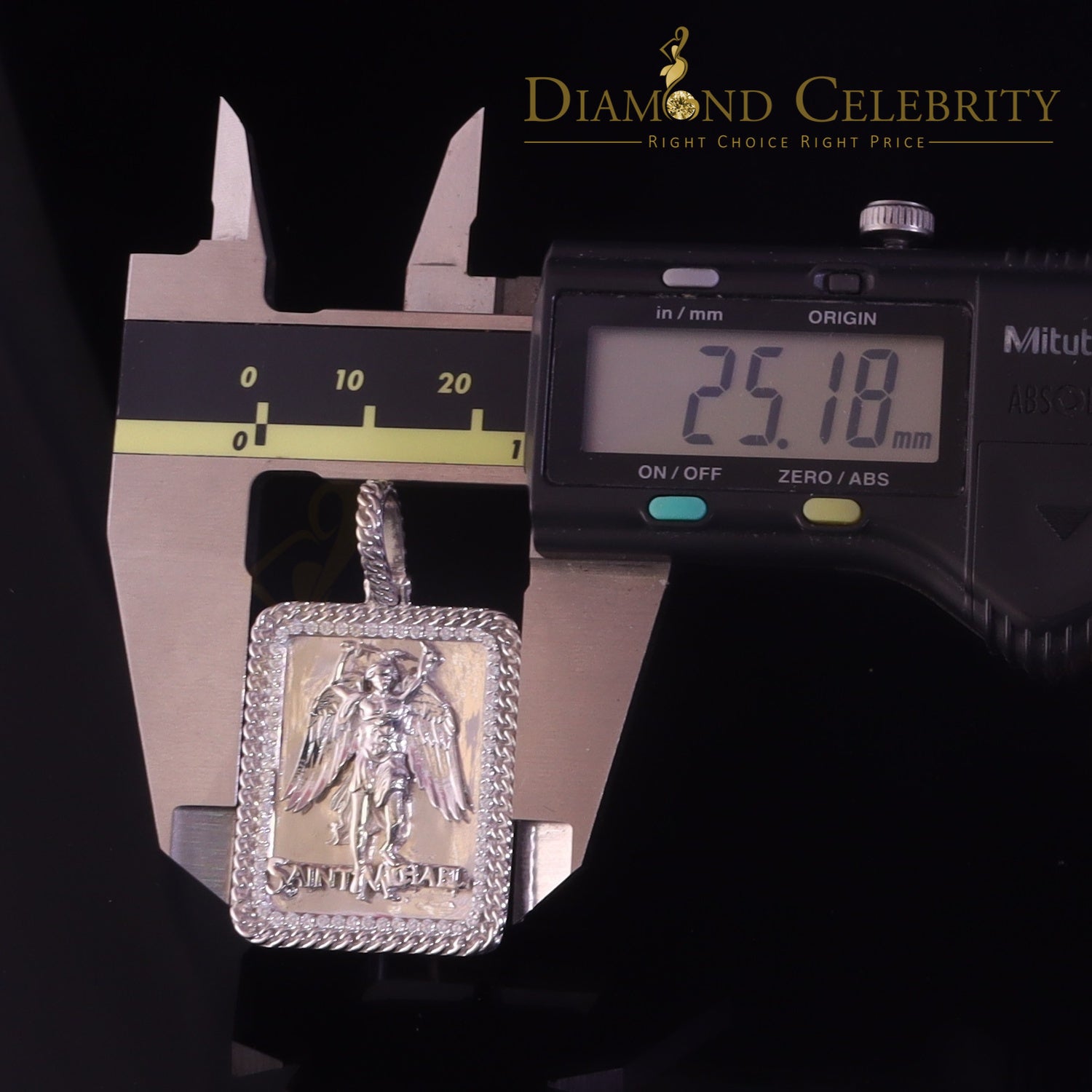DiamondCelebritees Men's 925 Silver 0.66ct CZ Square SAINT MICHEAL White 1.00 inch 3D Pendant