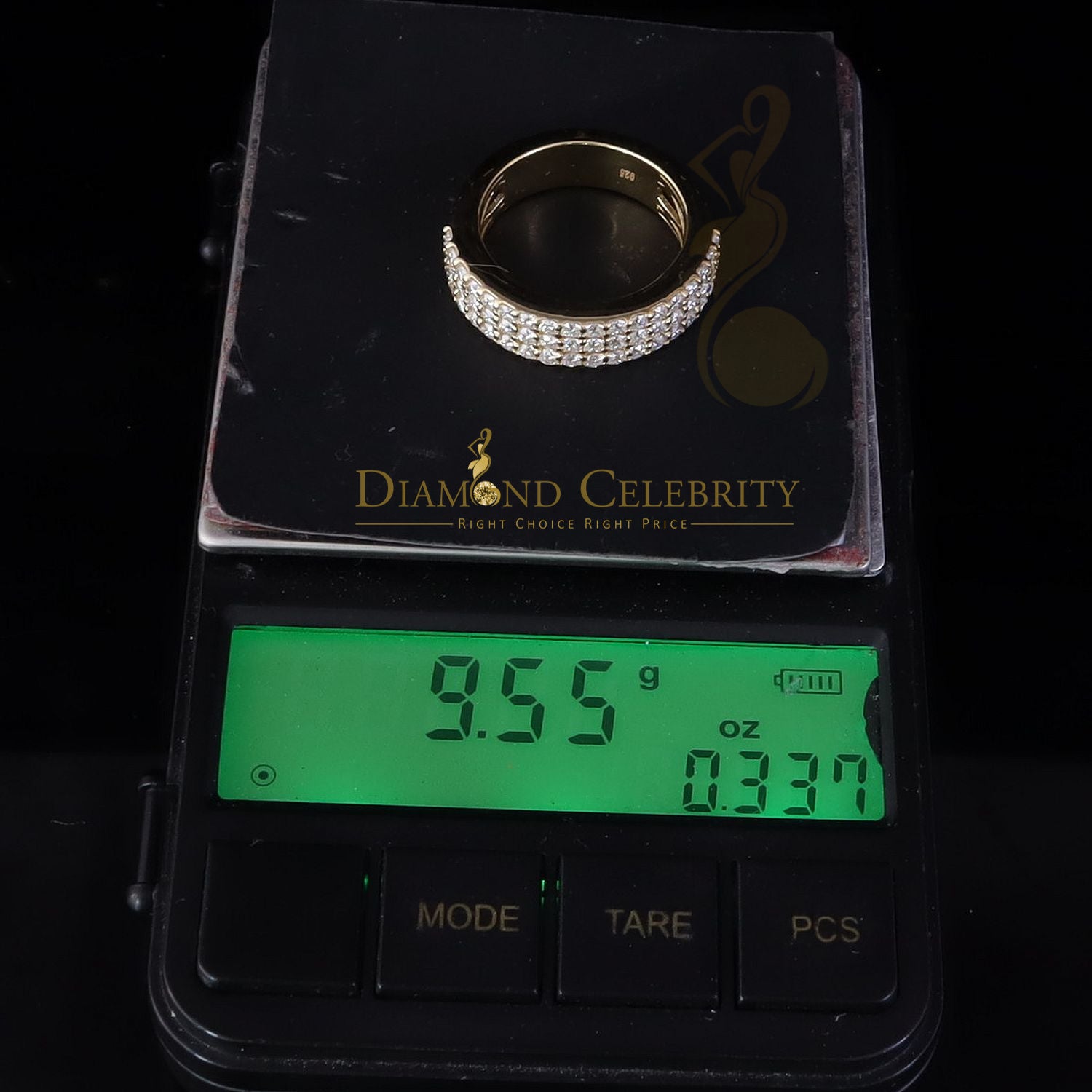 DiamondCelebritees Men's 925 Silver Yellow 2.00ct VVS D Moissanite 3 Row Wedding Band Ring Size 10