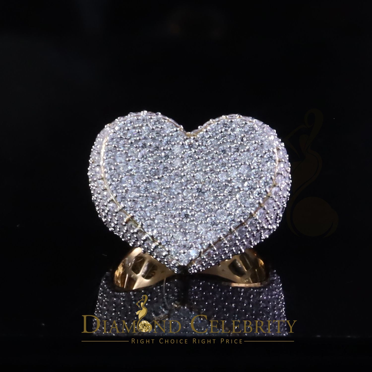 DiamondCelebritees Men's 925 Yellow Silver 5.00ct VVS 'D' Round Moissanite Heart Ring Size 8