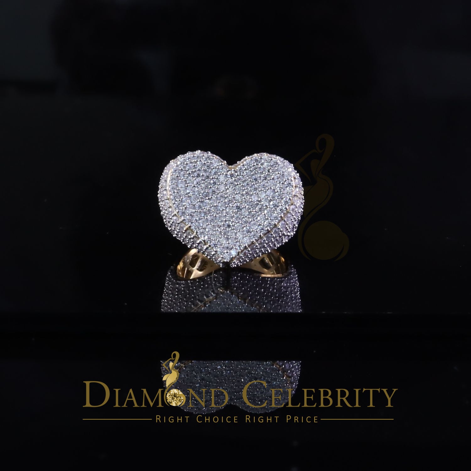 DiamondCelebritees Men's 925 Yellow Silver 5.00ct VVS 'D' Round Moissanite Heart Ring Size 8