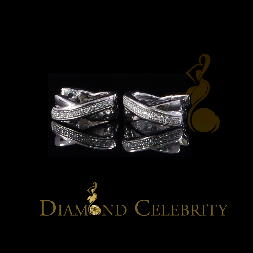 DiamondCelebritees Mens hip hop white Gold 925 Sterling Silver Iced 1 row Huggie Hoop earrings