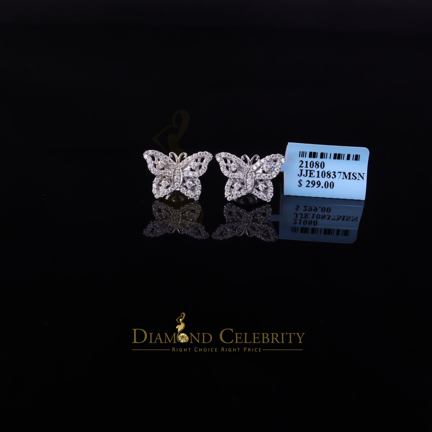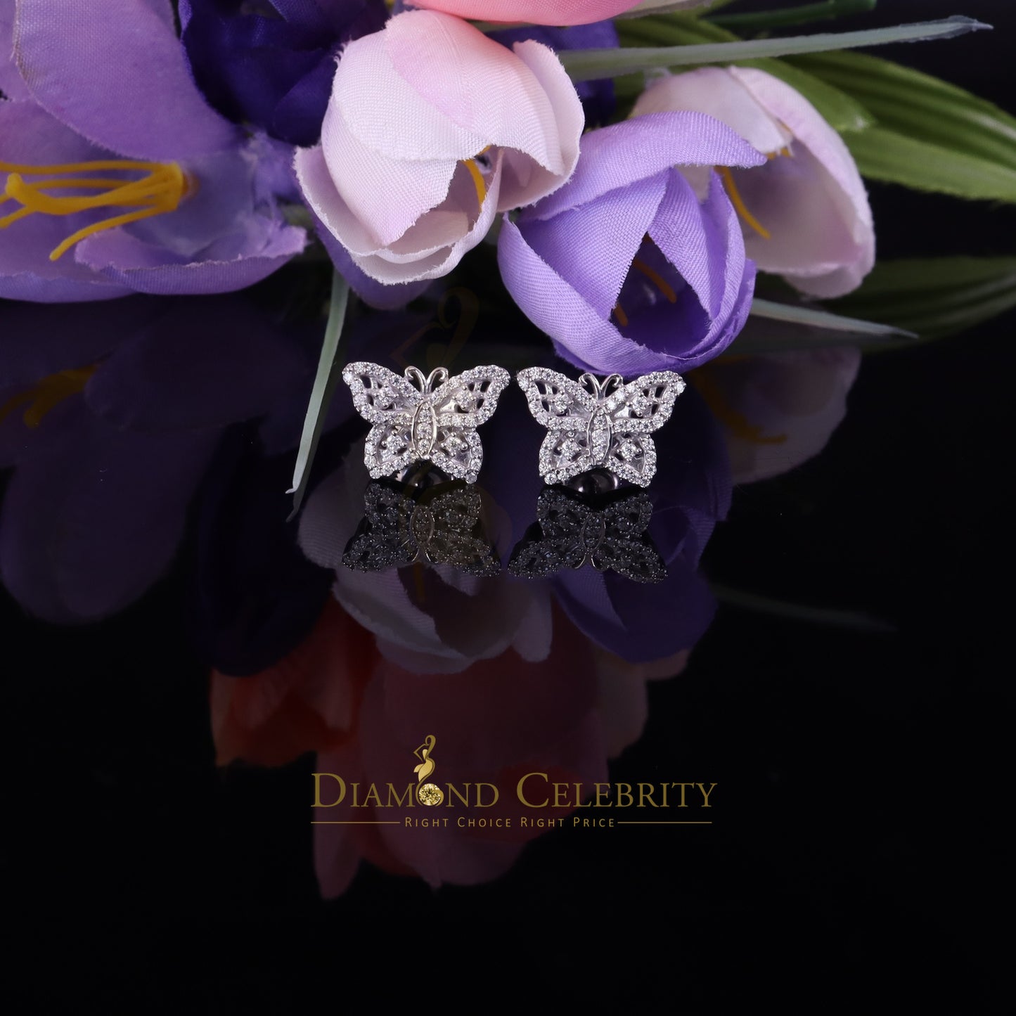 Diamondcelebritees Men's/Women's 925 Silver White 0.50ct VVS 'D' Moissanite Butterfly Stud Earrings